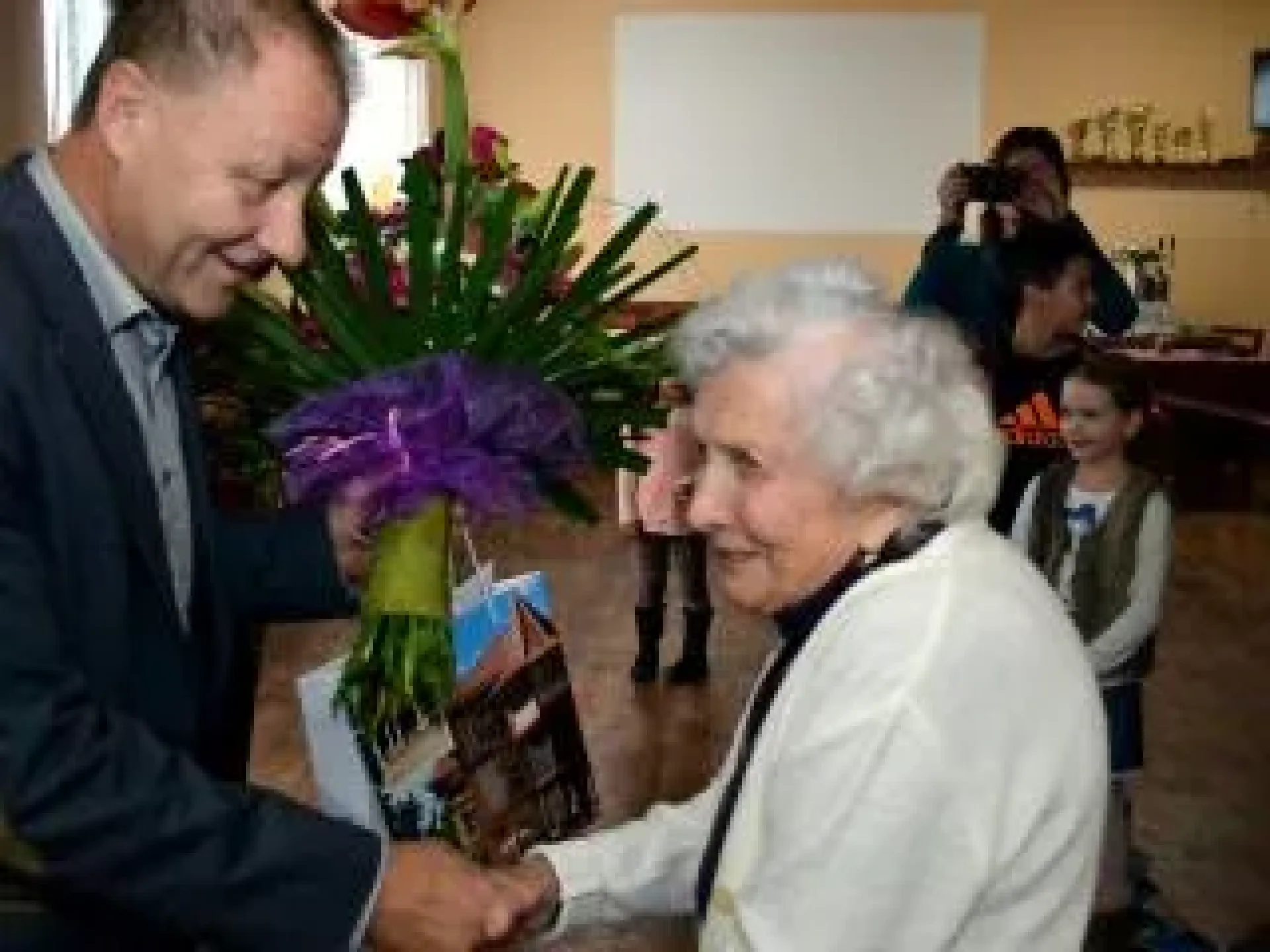 Pogratulovat jí přišel kromě rodinných příslušníků a známých spolu s představiteli obce také 2. místostarosta Luhačovic Roman Lebloch. Petrůvka totiž spadá do správního obvodu Luhačovic, které jsou takzvanou obcí s rozšířenou působností (ORP). Kromě toho oslavenkyně během svého života také řadu let v Luhačovicích žila. Pracovala tu i jako pokojská. Na oslavě nechyběla samozřejmě řada dárků a květin a nemohl chybět ani dort ve tvaru čísla 100.