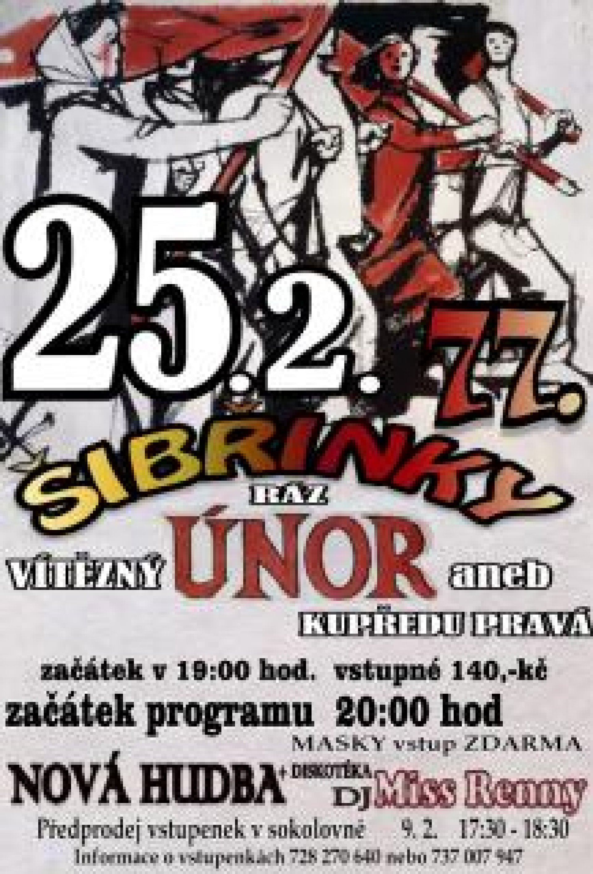 Masopustní veselí zakončí v sokolovně v úterý 28. února pochovávání basy, na kterém proběhnou nejen veselé litanie nad nebohou „zesnulou", ale také si budou moci lidé poslechnout cimbálovou muziku Dubina. Akce začíná v 18:30.Plakát-šibřinky