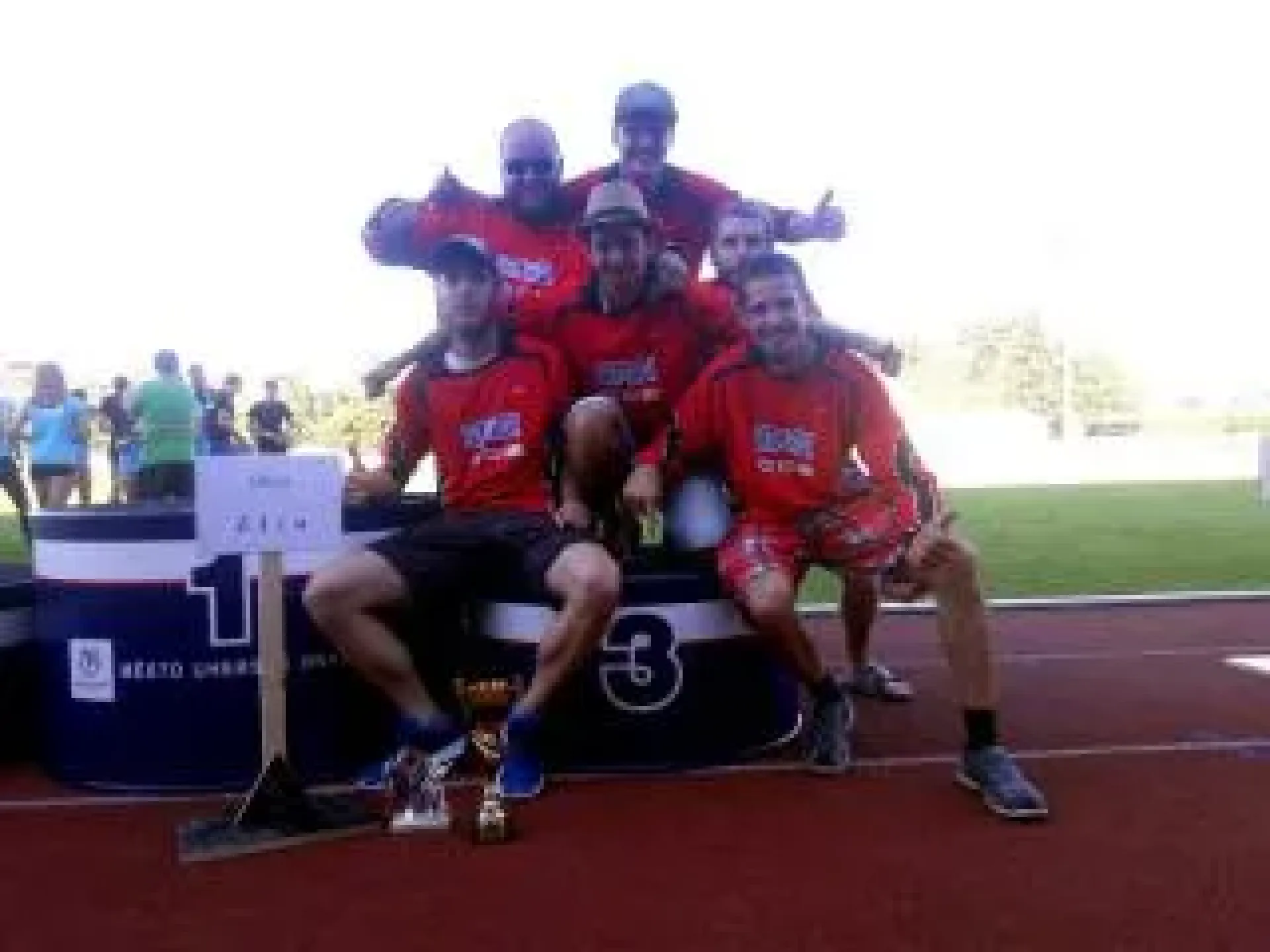 Atletický stadion v Uherském Hradišti na nás už po příjezdu dýchá závodní atmosférou - připravené dráhy s překážkami, na ovále již první rozcvičující se závodníci z ostatních sborů. Nezbytná prezence a za nedlouho za zvuků státní hymny slavnostní zahájení. Pro letošní rok máme startovní číslo jedna a celou soutěž tak zahajujeme jako první v disciplíně 4x100m s překážkami. Drobná zaváhání a chybičky nás stojí drahocenné vteřiny - časomíra se zastavuje až na hodnotě 65:25. Chybují ovšem i ostatní a tak za náš výkon bereme do průběžného hodnocení čtyři body za čtvrtý nejrychlejší čas.