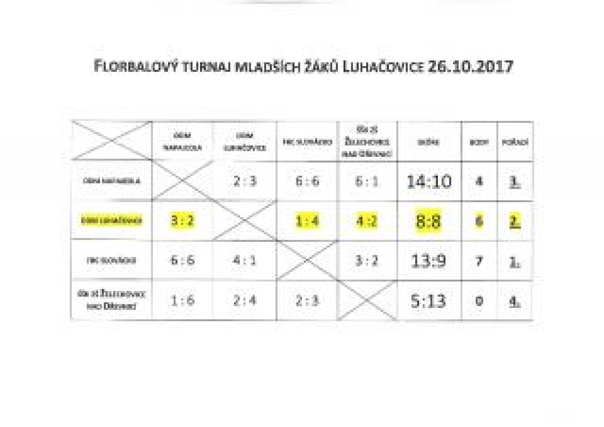 Náš tým potvrzoval vysokou kvalitu a dominanci ve všech zápasech. První formace předváděla velmi pěkný kombinační florbal. Soupeři měli ovšem co dělat, aby udrželi na uzdě i naši druhou mladší formaci. Velice pěkná byla divácká podpora rodičů určená našim hráčům.