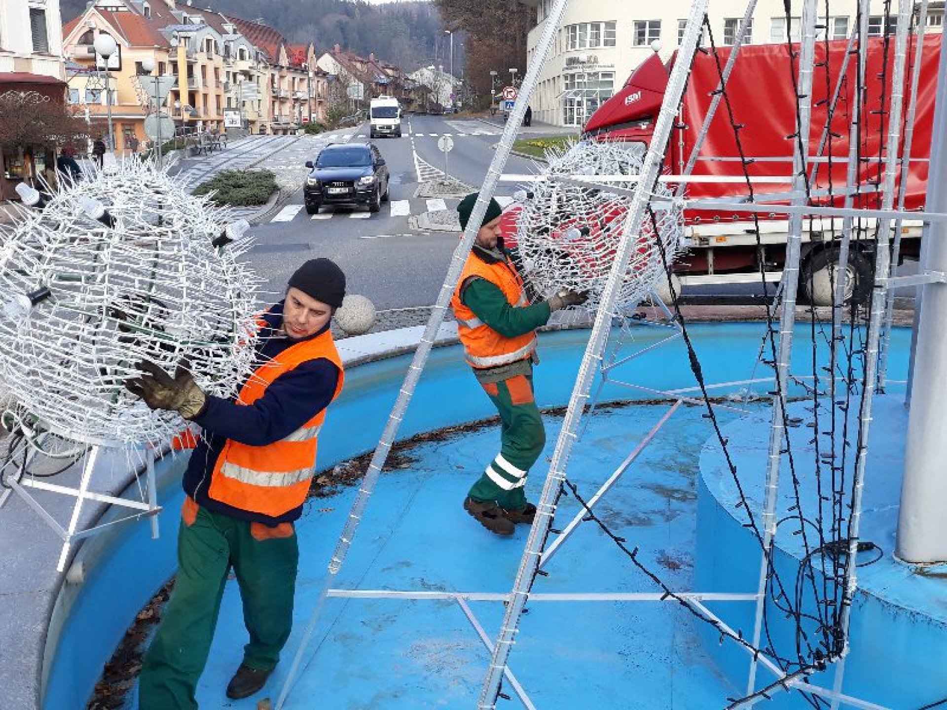 Už řadu dnů se pracovníci luhačovických Technických služeb věnují také postupné přípravě města na období Vánoc.