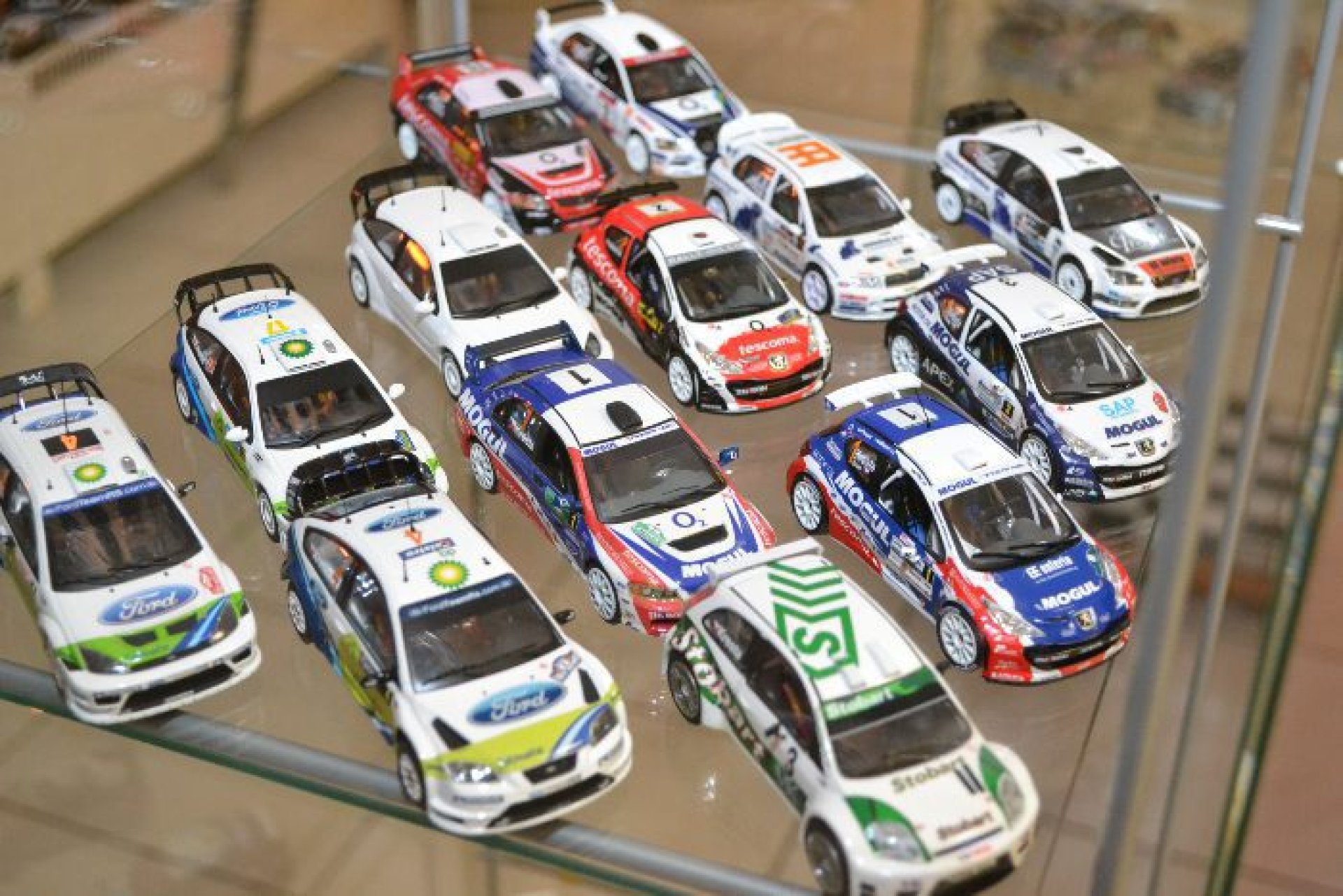 Je tu asi 250 modelů, minimálně 30 jich mám ale ještě doma,“ prozradil Bartoníček.. Modelům se věnuje od roku 2001. „To jsem si zakoupil první plastové modely od firmy Heller v měřítku 1:43. Začal jsem je skládat, natírat, polepovat, pak se přidaly další,“ přiblížil sběratel. Většina modelů závodniček je kovová a jsou právě v měřítku 1:43. „Tyto modely mají na délku asi 10 centimetrů, mám nějaké ale i nějaké plastové 1:24. Největší jsou 1:18,“ poznamenal Bartoníček. Aby model vypadal tak, jak jej prezentuje na výstavě, dá to ovšem hodně práce. „Některé jsou dělány opravdu do detailů. V autech jsou přesně zpracované vnitřky včetně výstuhových rámů, závodních sedaček, pásů, zkrátka věrné výbavy závoďáku.