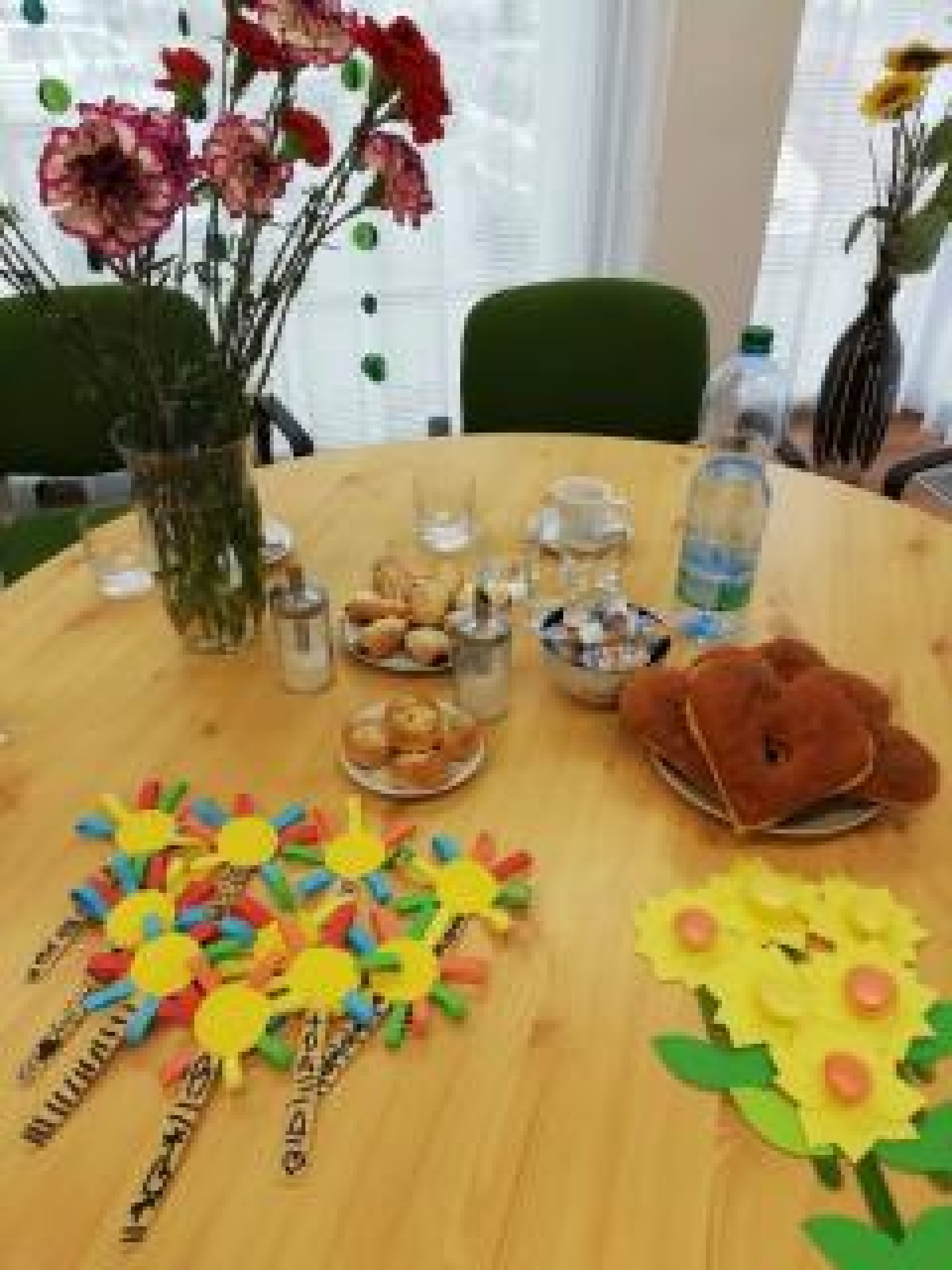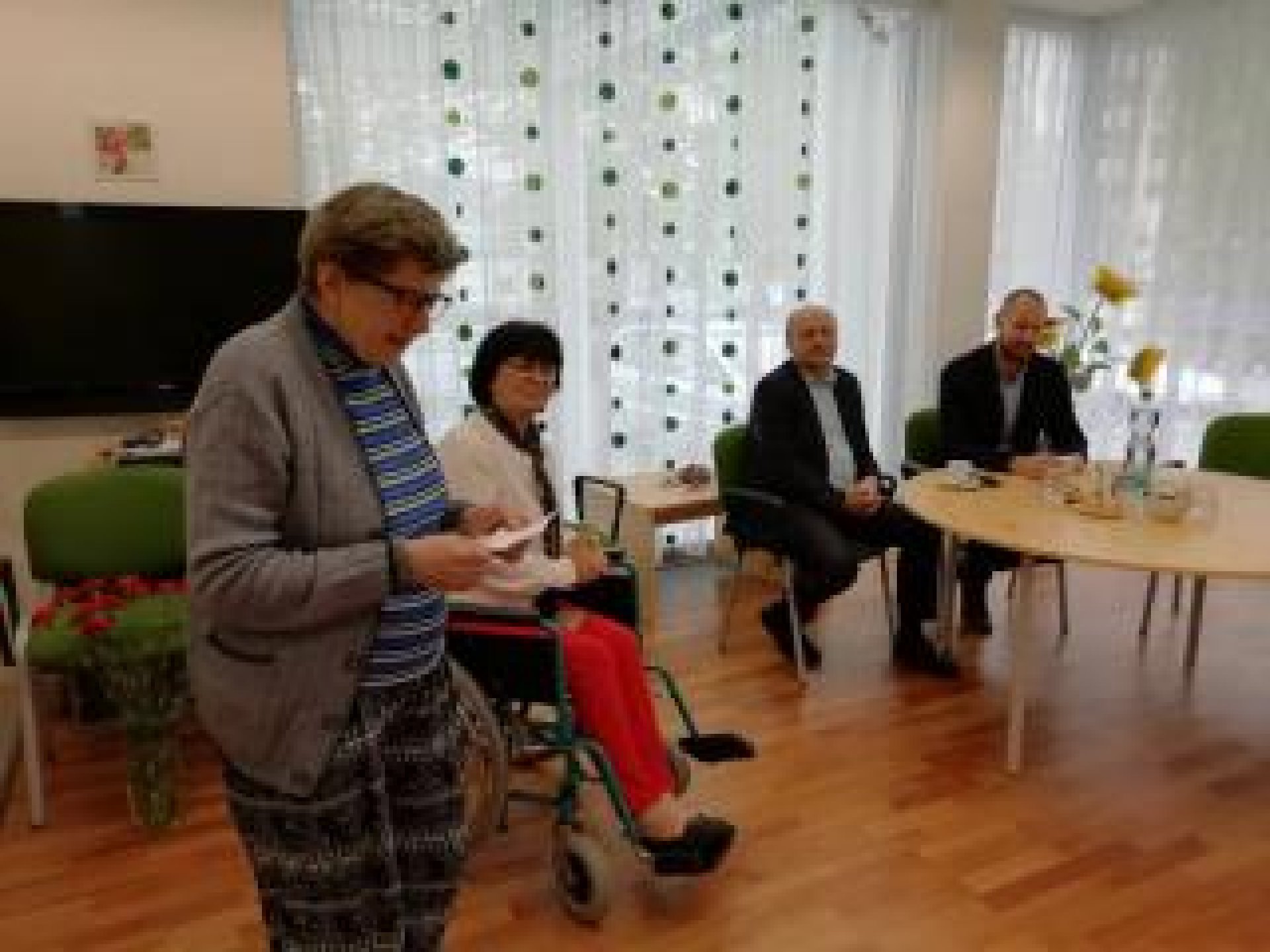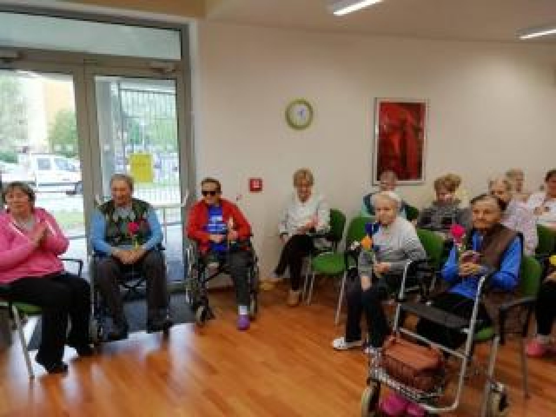 Příjemné posezení zpestřily svým vystoupením také děti z Mateřské školy Luhačovice pod vedením paní učitelky Koutné, které také všem rozdaly jimi vyrobené papírové kytičky. Naše klientka - paní Marie Šimšalíková - všem přečetla báseň o mamince, kterou sama složila. Beseda se nesla v příjemném duchu, pan starosta a místostarosta všem sdělili novinky týkající se rekonstrukce křižovatky v okolí domova a byl také prostor na dotazy. Děkujeme a těšíme se na další návštěvu :-)