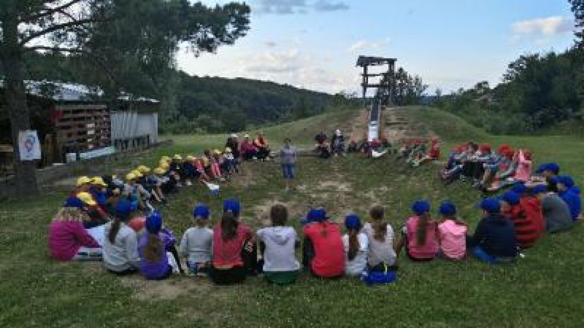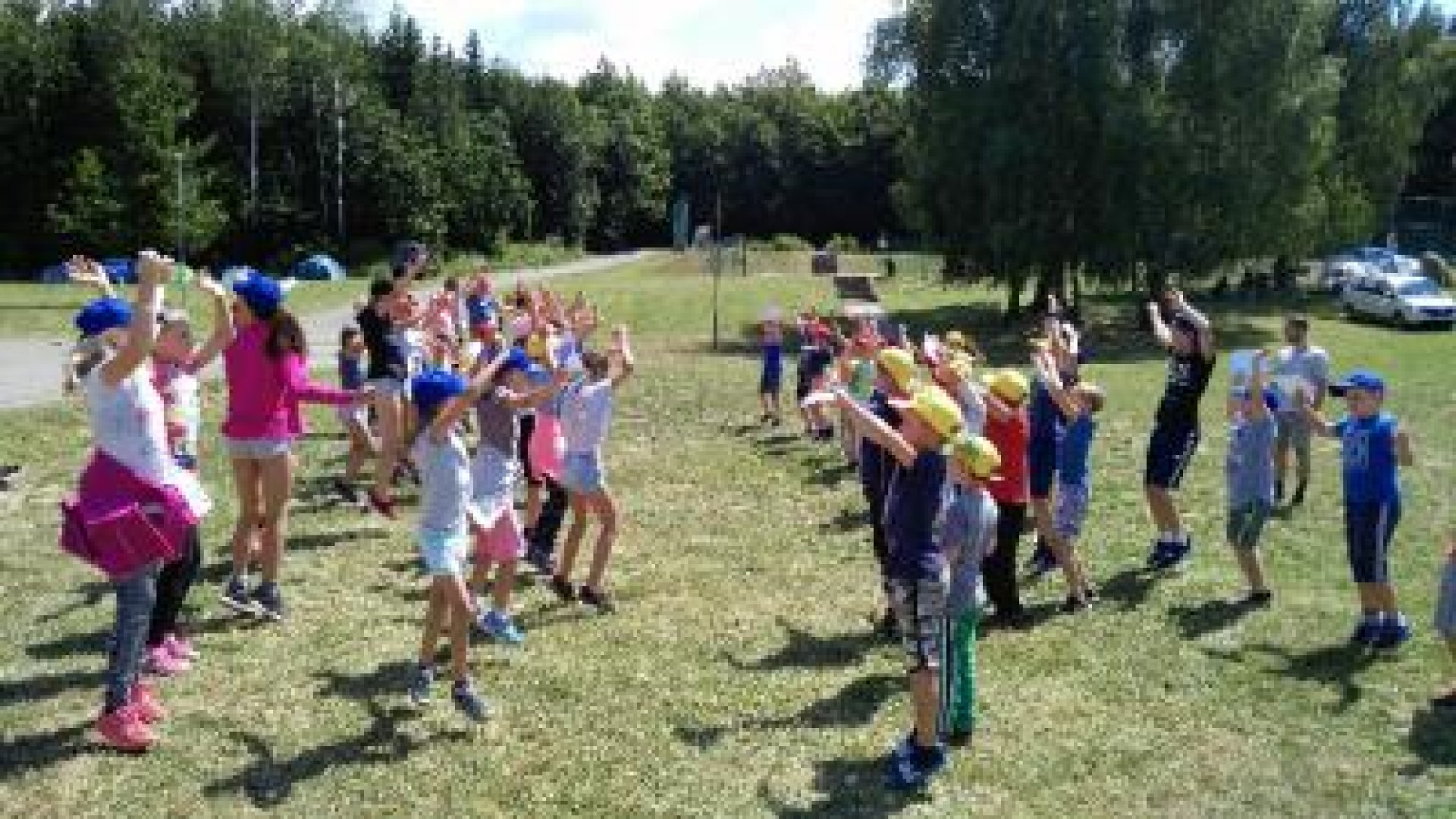 Každý oddíl si vybral jednu evropskou zemi a po dobu tábora bojoval za její vítězství. A tak jsme letos hostili výpravu z Francie, Holandska a Anglie. Každá země měla vlastní vlajku i pokřik a snažila se ve hrách vybojovat co nejvíc bodů, aby zvítězila. Součet nasbíraných bodů byl těsný, ale nakonec vyhrál oddíl Anglie. Po celou dobu nám přálo počasí na pobyt v přírodě. Bylo slunečno a nebylo horko /stále foukal chladnější vítr/. I když nebylo počasí na koupání, což nám bylo líto/ v areálu je krásný, čistý bazén/, využili jsme čas na procházky /např. na Janův hrad/ na hry a soutěže venku. Jeden den jsme si udělali celodenní výlet do ZOO Lešná. Každý den jsme si taky našli čas na výtvarné tvoření. Děti si udělaly prázdninový deník a připínací placku podle vlastní fantazie. Cílem tábora byla relaxace a oddech v přírodě a to jsme určitě splnili, a už teď se můžeme těšit na příští táborová dobrodružství.