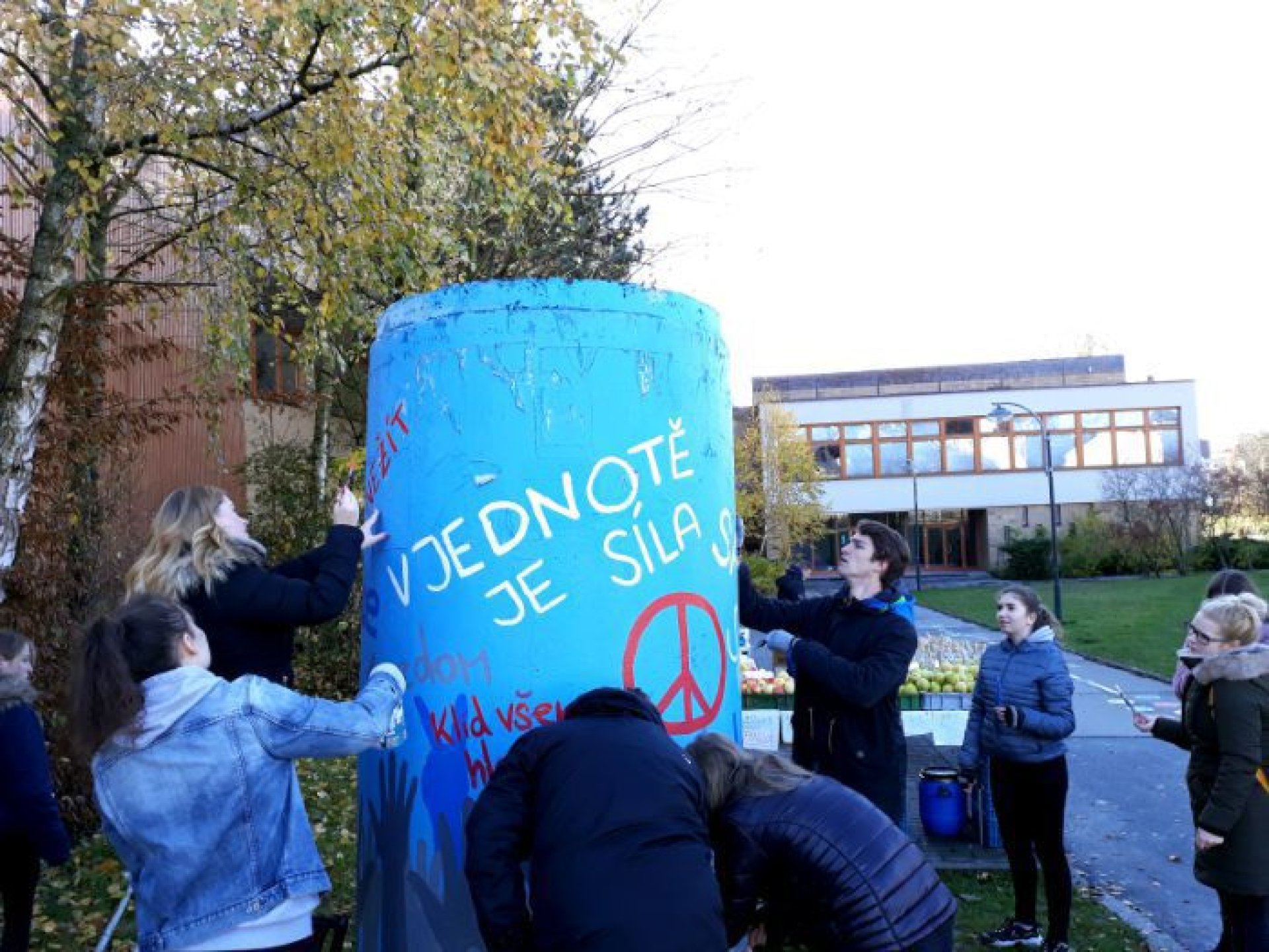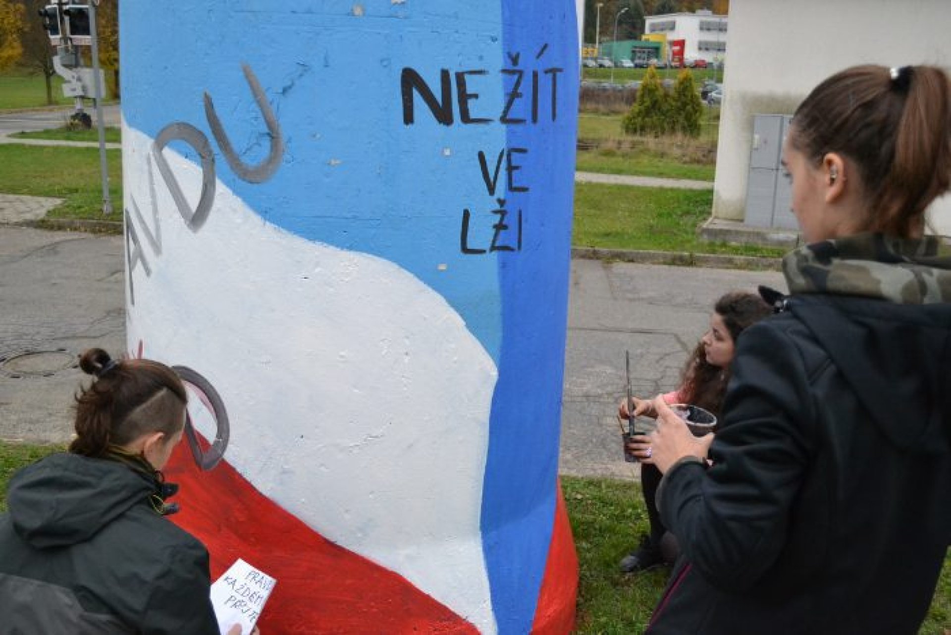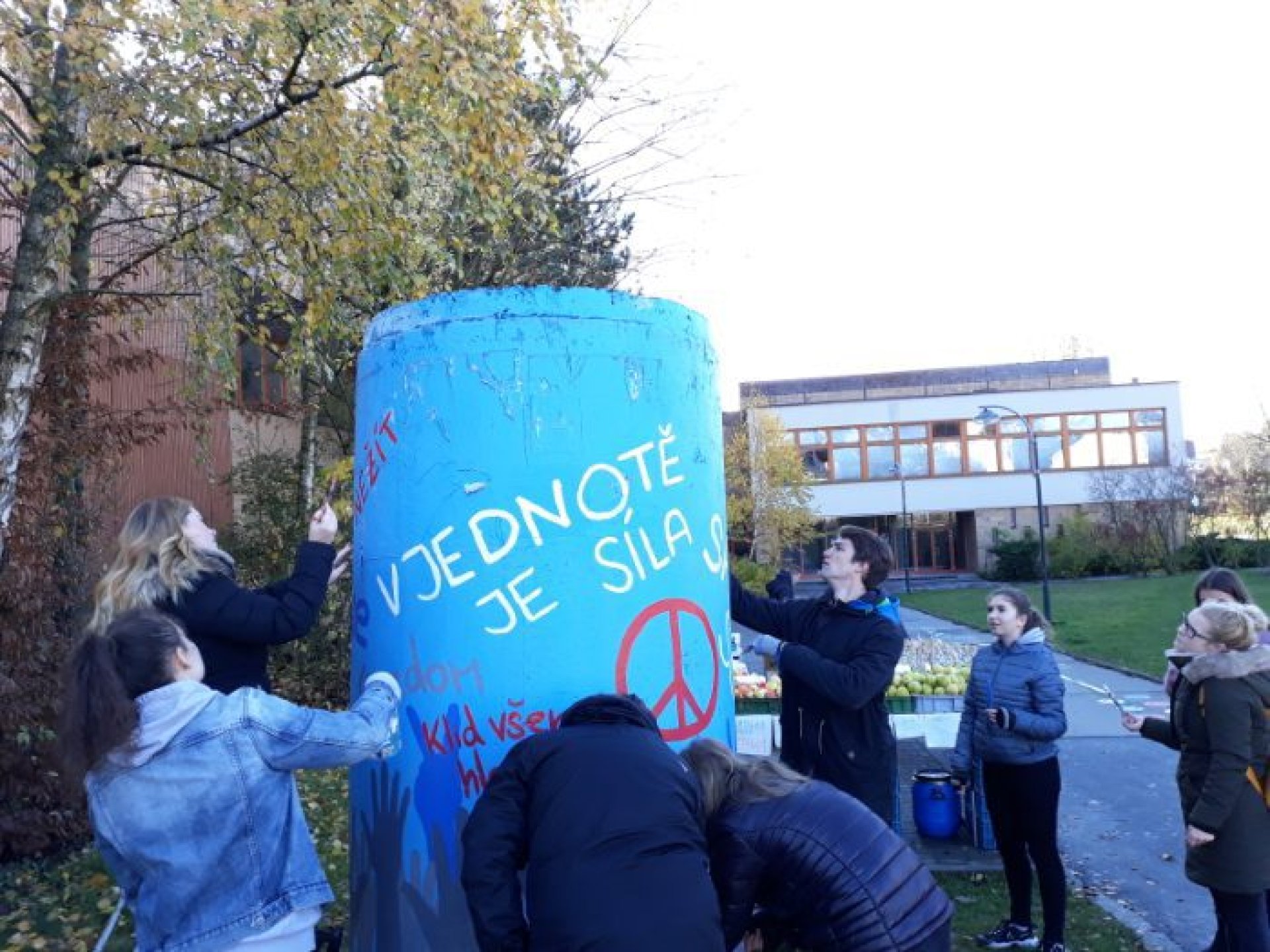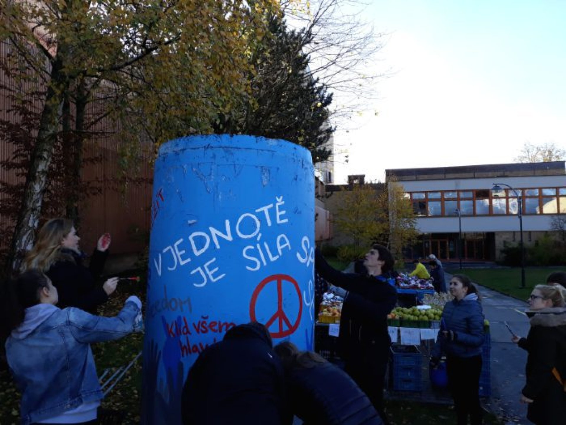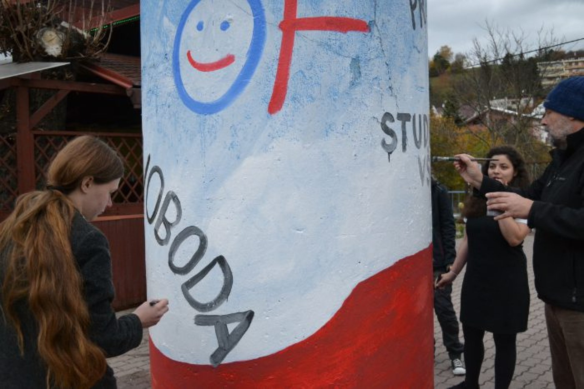 Co pro něj znamená svoboda a zda považuje za důležité připomínat si události spojené s obnovením demokracie u nás prozradil jeden ze studentů Michal Matějičný ze 4. U. „Připomínat by se to mělo určitě. Žít v nesvobodné zemi určitě nemohlo být lehké. Úplně si to asi nedokážu představit, člověku napoví třeba některé filmy, ale nezažil to. Nedokážu si představit, jak se rozhodovali lidé, jak se k různým věcem v nesvobodě postaví, to muselo být určitě náročné na psychiku. Určitě je pro mě největším dokladem současné svobody mořnost volně cestovat kamkoliv. Na druhou stranu je možná dnes v něčem svobody až příliš, protože to jak se někteří vyjadřují, je až moc…,“ sdělil student. Jeho spolužačka právě psala na jeden ze sloupů nápis Nežít ve lži. Nešlo než se jí zeptat, jak se dívá na život ve lži před listopadem 1989. „V té době se určitě muselo žít ve lži, protože, když někdo říkal něco, co se nelíbilo, svůj názor, hrozilo mu vězení i horší věci. Jinak si ale myslím, že tato doba se v tomto zase úplně neliší, protože sice za pravdu do vězení nejdete, ale zase jsme kolikrát oblbováni různými médii,“ podotkla Kateřina Galušková.