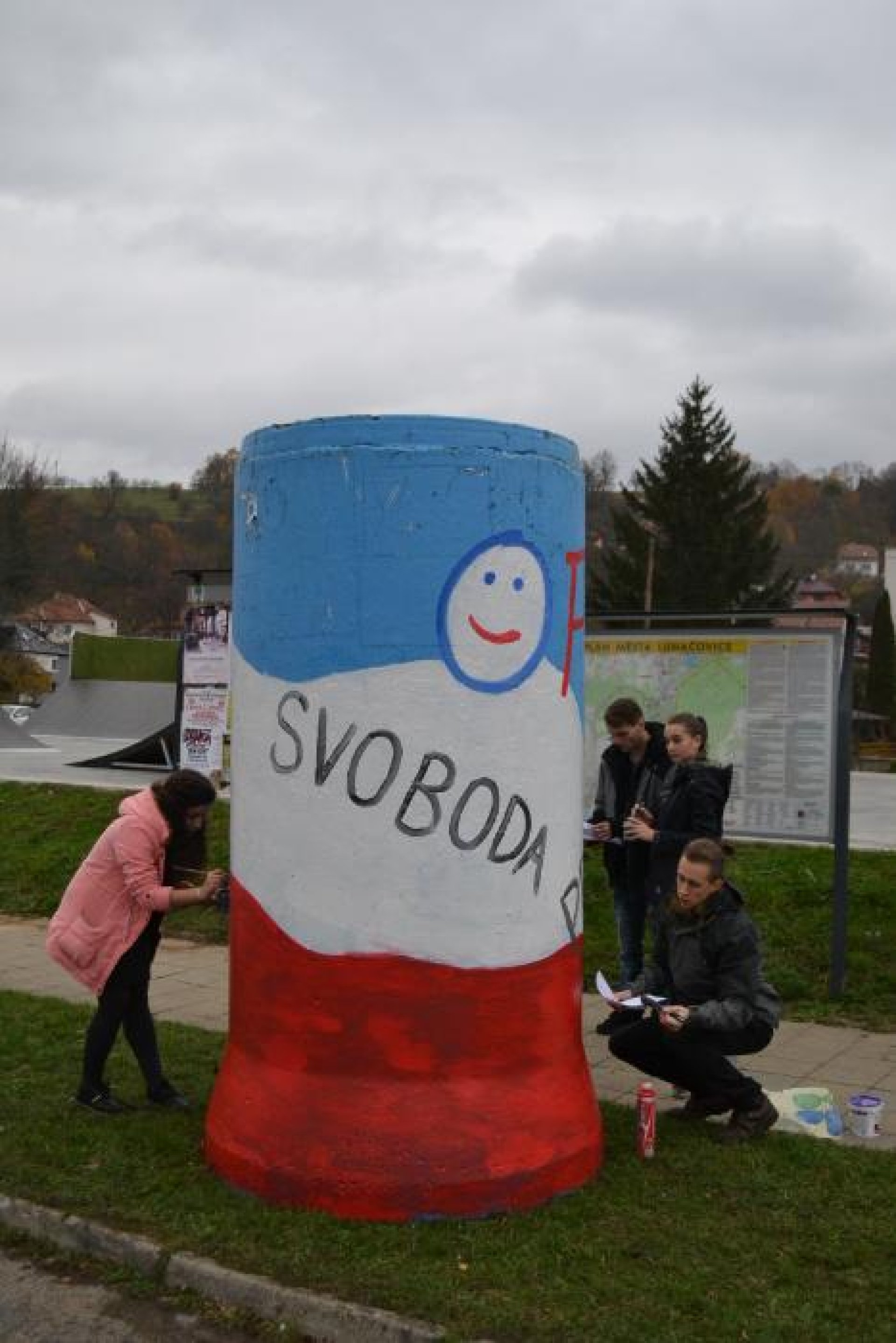 Streetartově vyzdobené sloupy připravené studenty SOŠ Luhačovice budou k vidění ve městě až do konce listopadu. Jejich výzdoba byla začleněna do řady akcí k výročí sametové revoluce, které jsou v Luhačovicích spojeny pod mottem Děkujeme, že můžeme. Jejich vyvrcholením je setkání veřejnosti 17. listopadu na náměstí před luhačovickou radnicí.