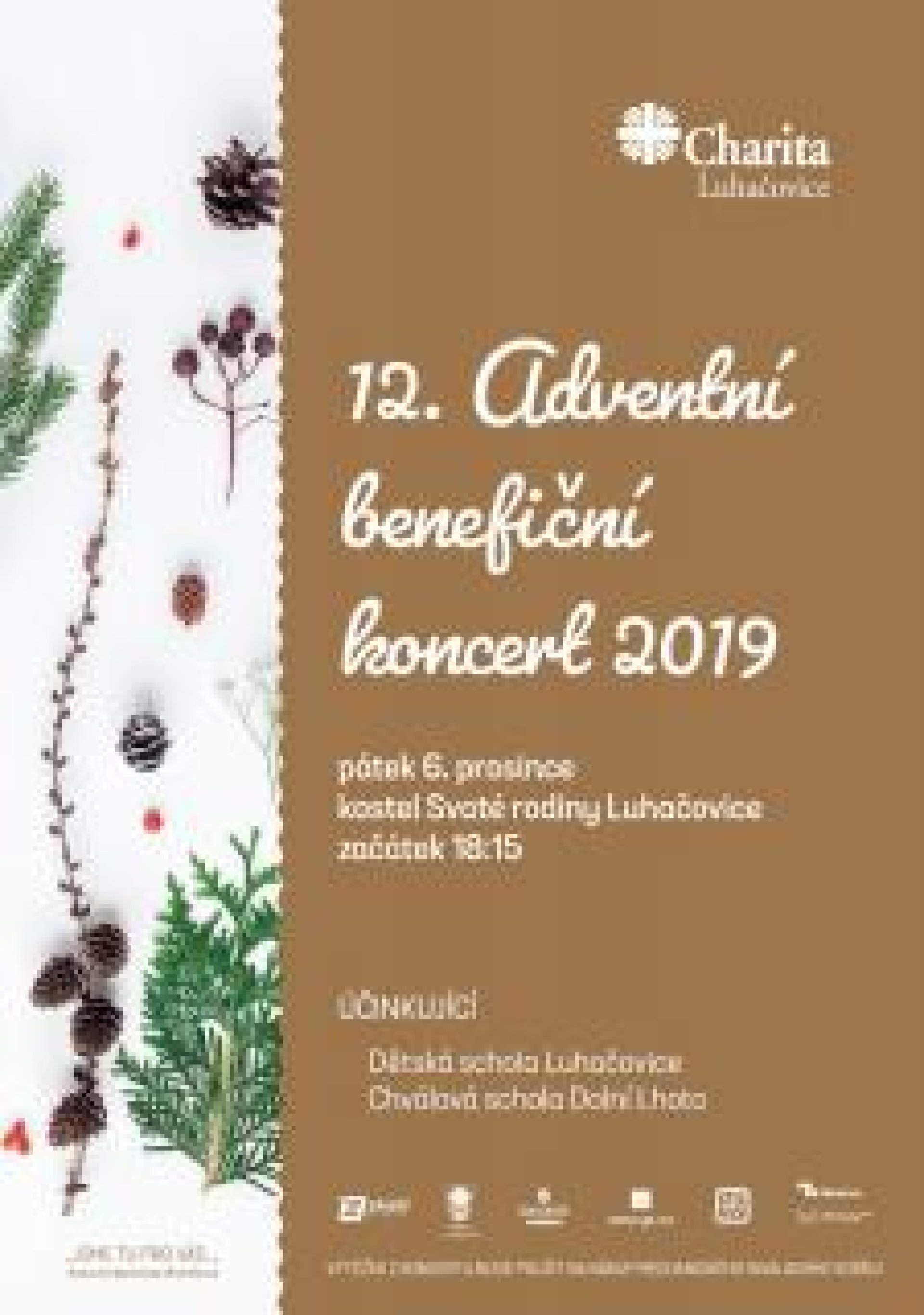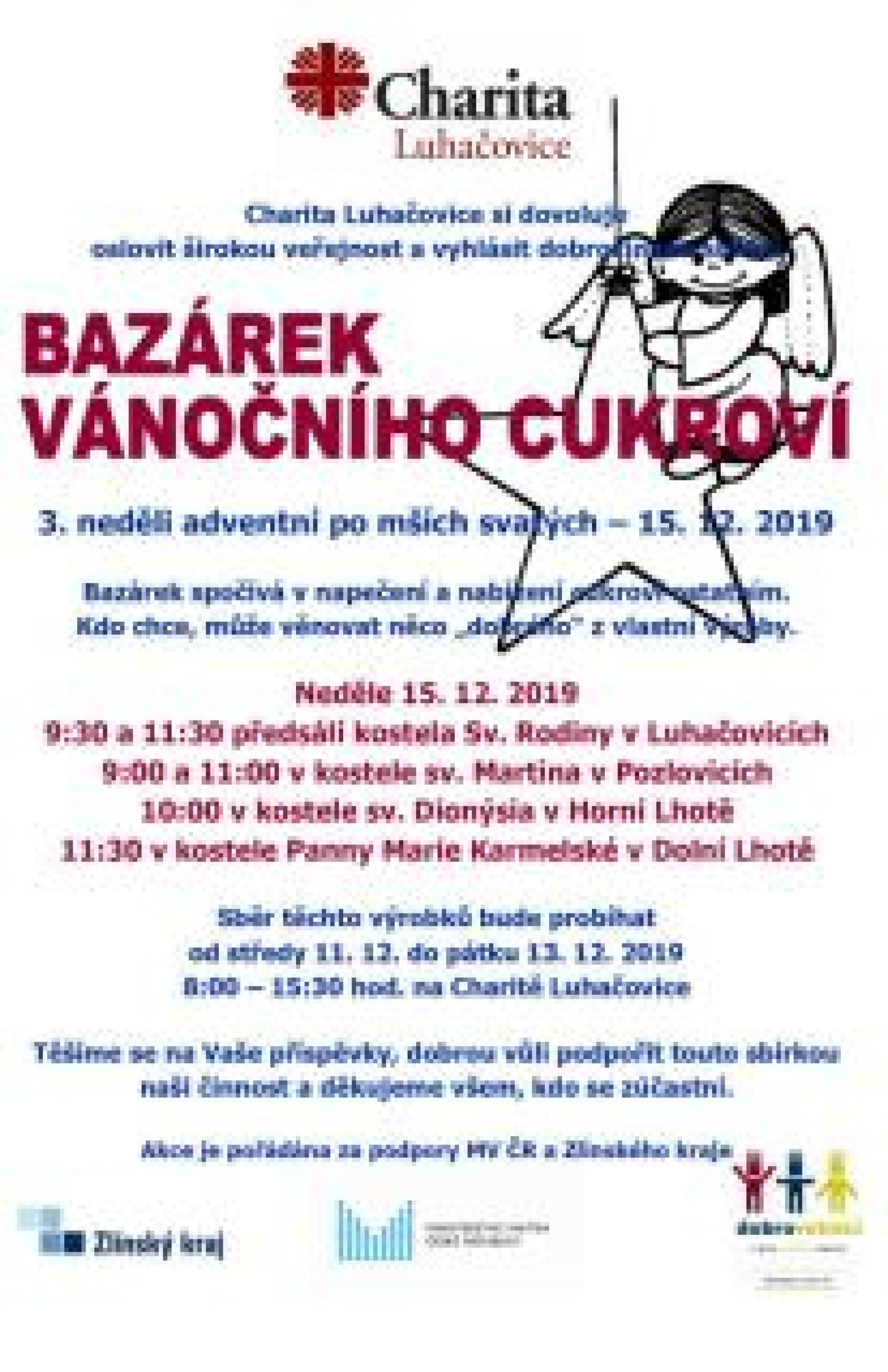 Mimo jiné v pátek 6. prosince pořádá v luhačovickém kostele Charita další ročník Adventního benefičního koncertu. Přispět mohou občané ale také podporou konání Vánočního bazárku cukroví 15.12. a přispěním na sbírku s ním spojenou. Blíží se rovněž tradiční Tříkrálová sbírka. Do ní se lidé mohou zapojit nejen tím, že přispějí. Už nyní se mohou rodiče s dětmi hlásit také k aktivní účasti na koledování zapojením do kolednických skupinek. Další informace ke zmíněným akcím Charity Luhačovice jsou uvedeny v přílohách níže.