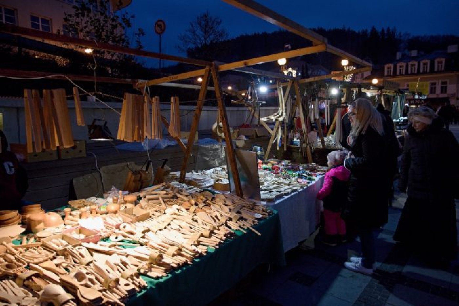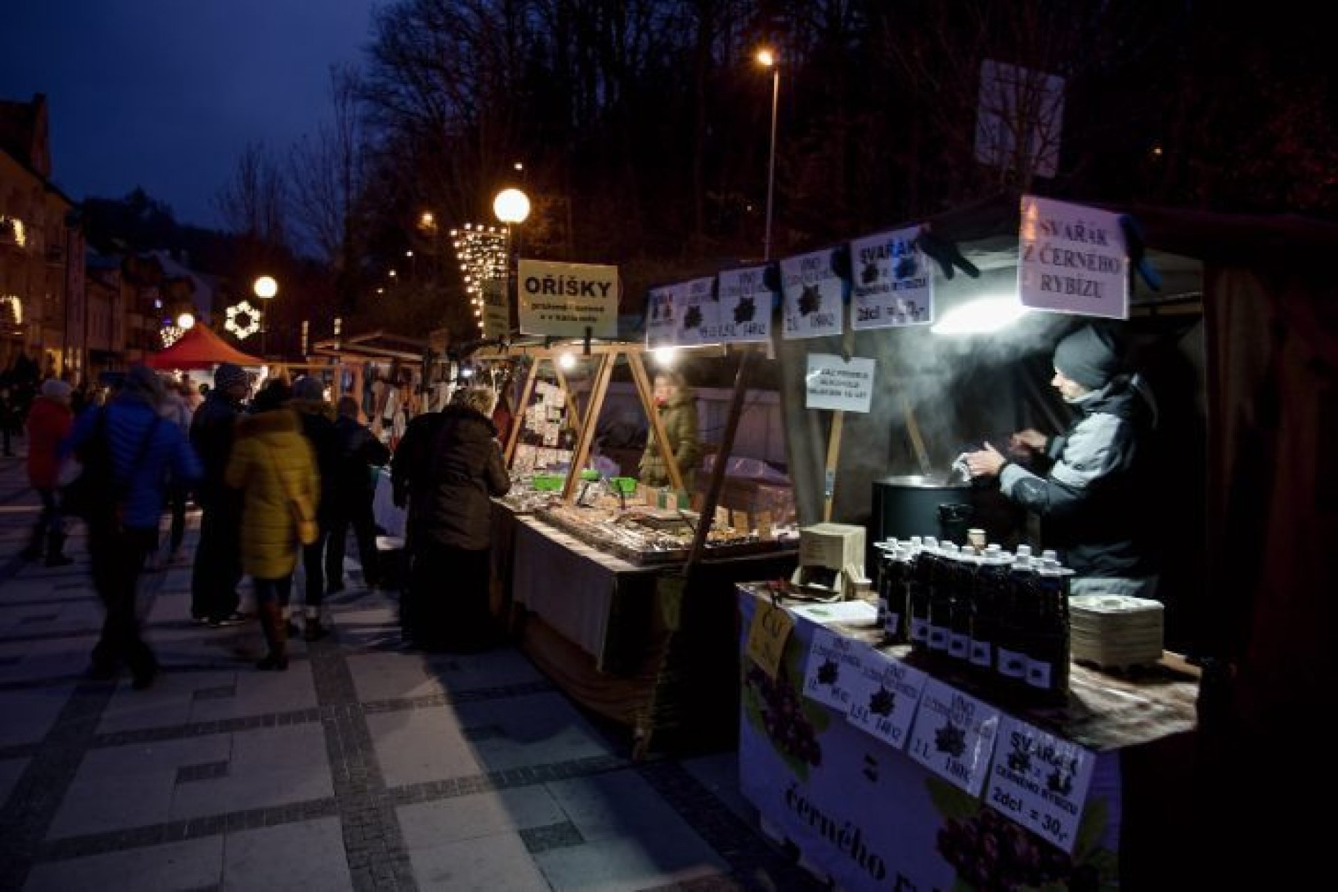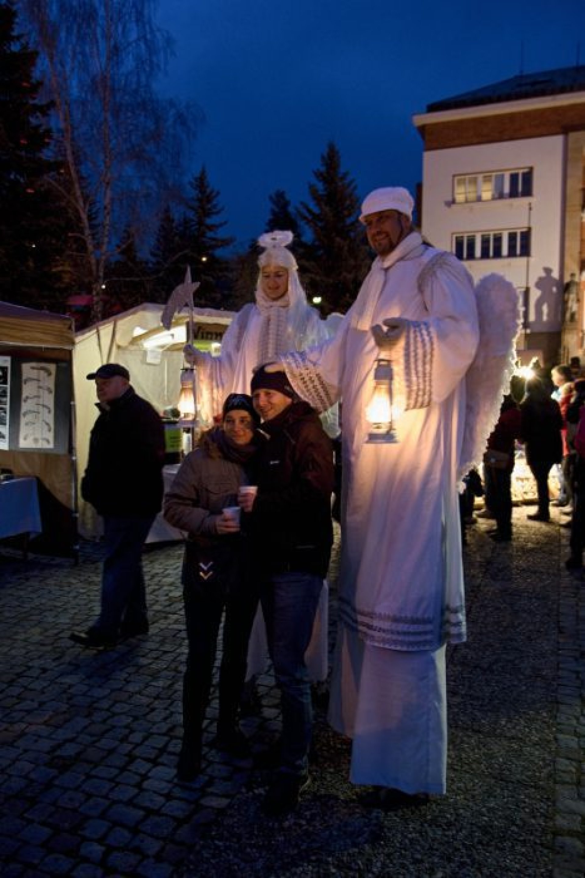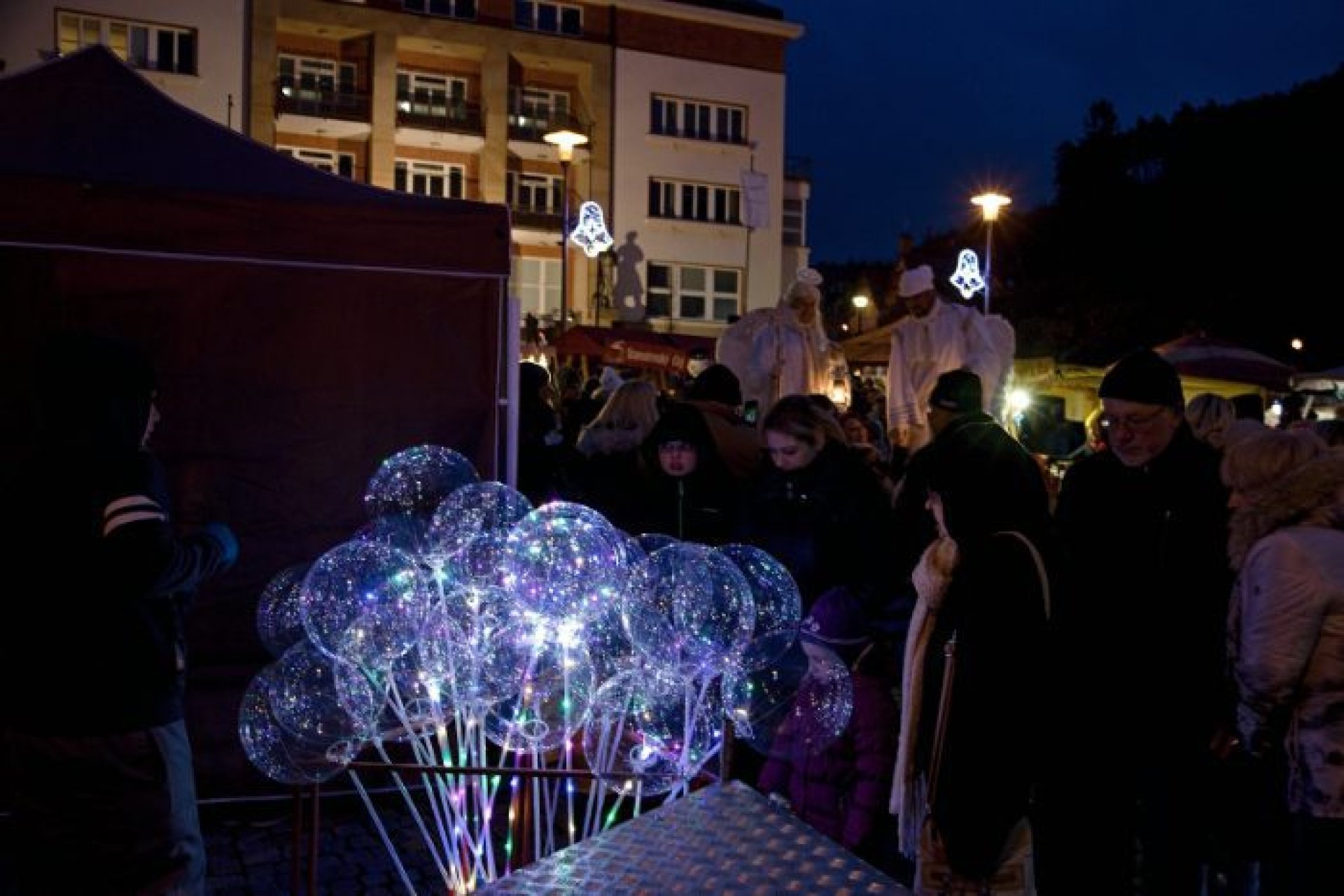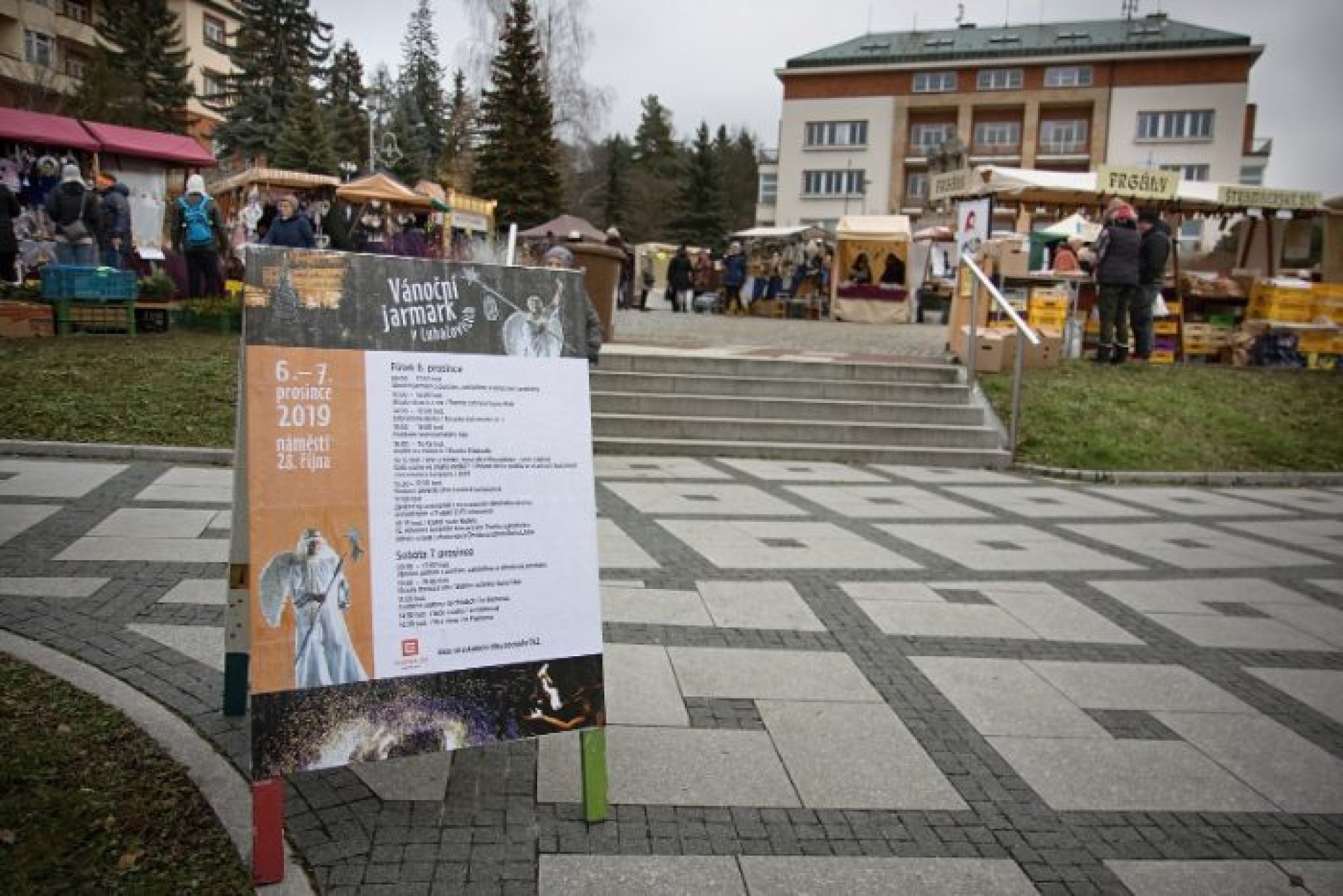 V programu prvního dne nechybělo ani podávání starostenského čaje, jehož výtěžek jde na dobročinnost Korunce Luhačovice, ani přání starosty a místostarosty všem občanům a návštěvníkům. Příchozí si mohli prohlédnout sovy a další dravé ptáky, které přivezla Stanice ochrany fauny z Hluku, k vidění byla i kovářská práce představená SOŠ Luhačovice a samozřejmě řada různých řemeslných výrobků, dobrot a horkých nápojů u mnoha stánků na náměstí před radnicí i v ulici Dr. Veselého. Návštěvníkům zazpíval krásné vánoční písně a koledy sbor Janáček, zahráli Trubači ZUŠ Luhačovice a na jarmarku se také pohybovala celá řada andělů. Procházeli jím vysocí andělé na chůdách v podání členů souboru Divadlo Chůdadlo. Na místo dorazili ale i andílci, kteří od zámku přišli průvodem pořádaným DDM Luhačovice. A anděl nechyběl ani v mikulášské družině, která byla na jarmarku také k vidění. Po rozsvícení vánočního stromu a ohňostroji uzavřel páteční program navazující Adventní benefiční koncert luhačovické Charity v místním kostele.