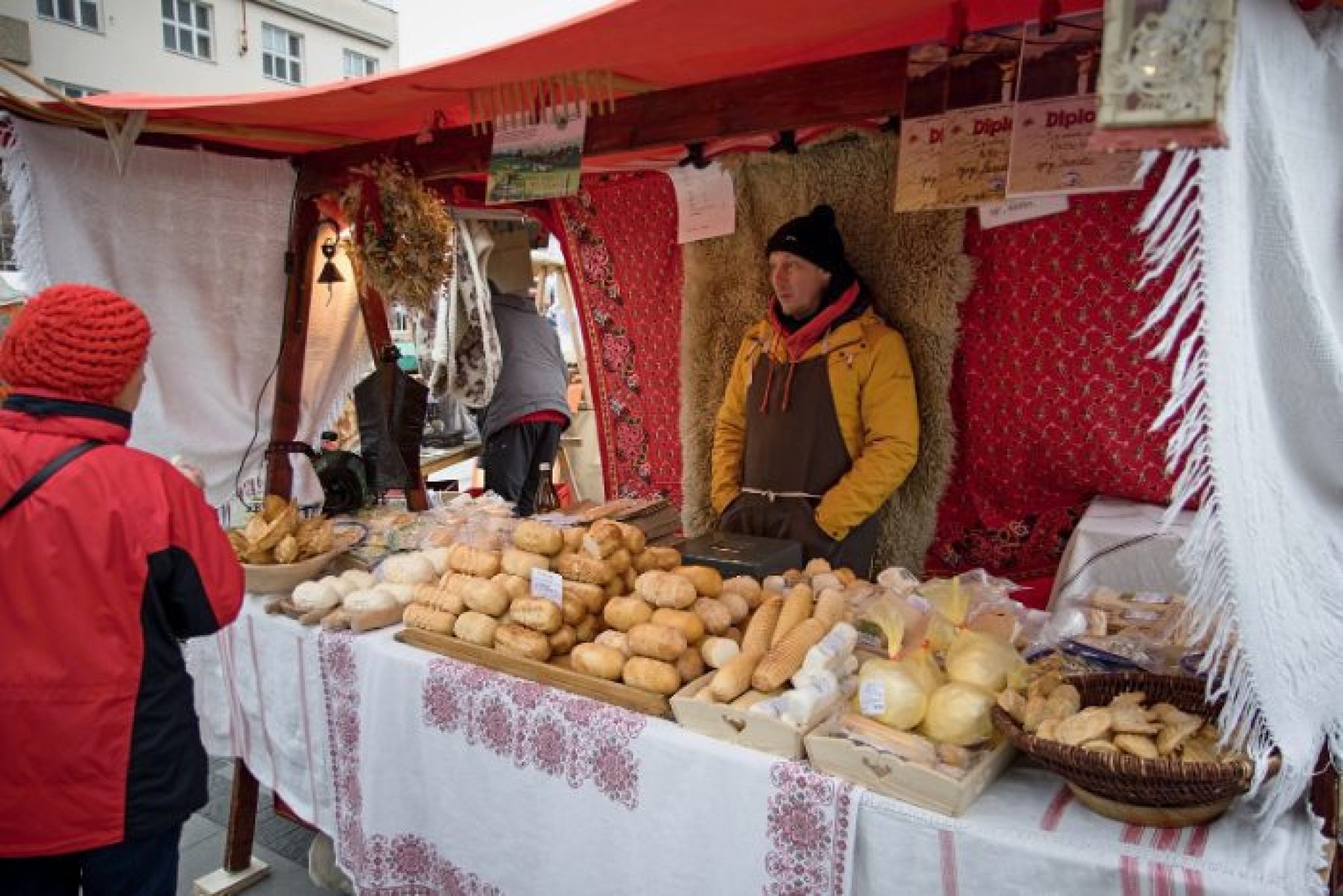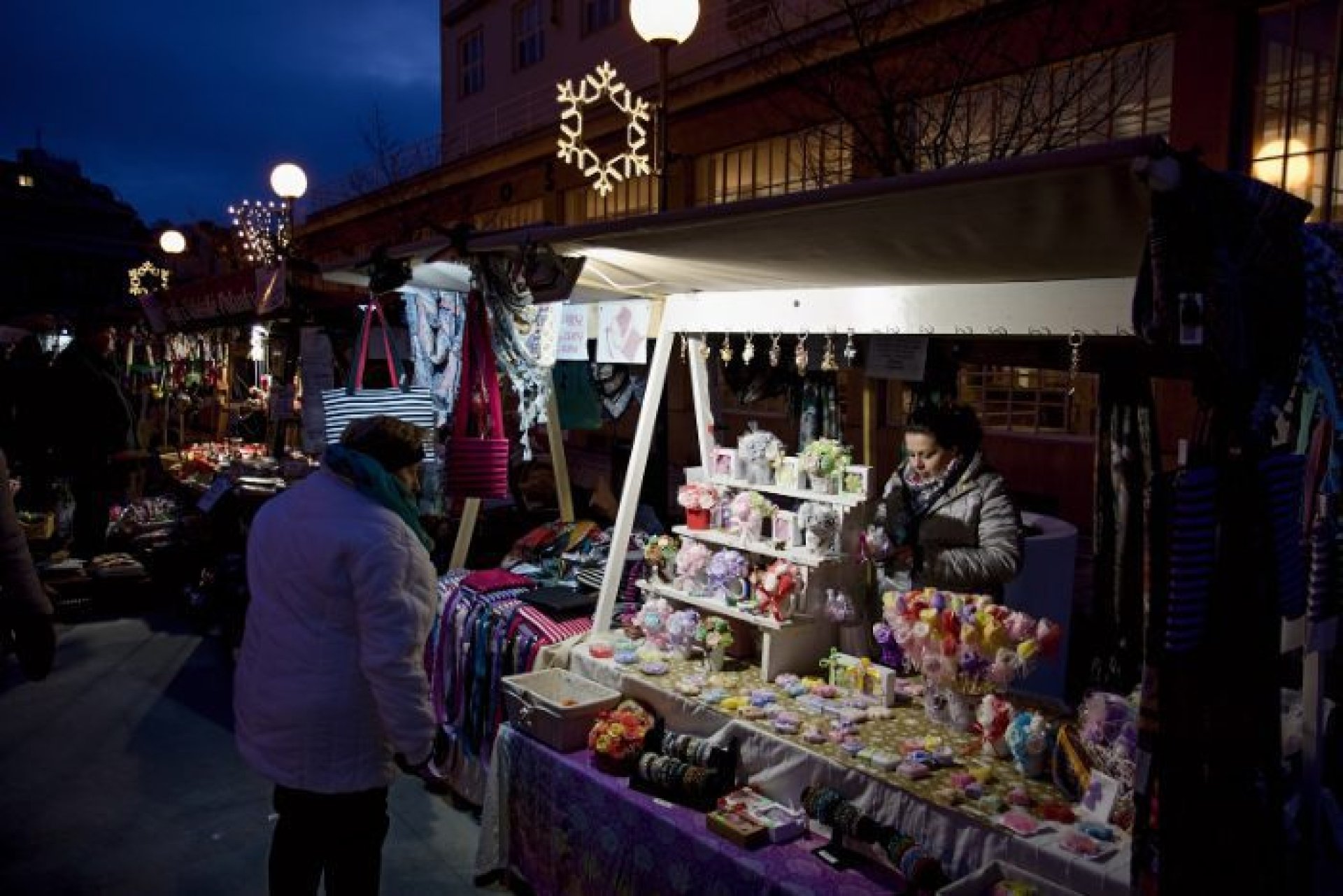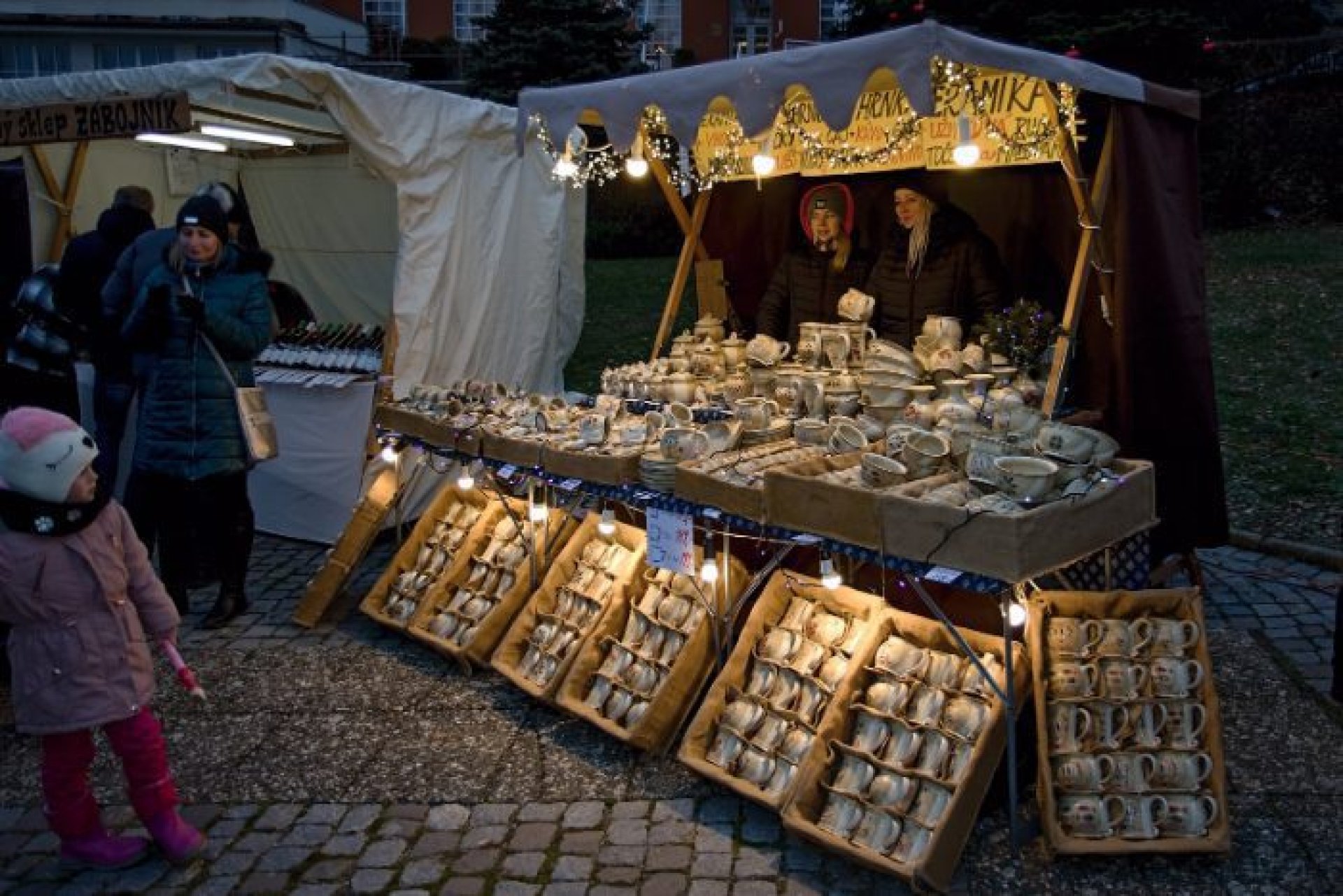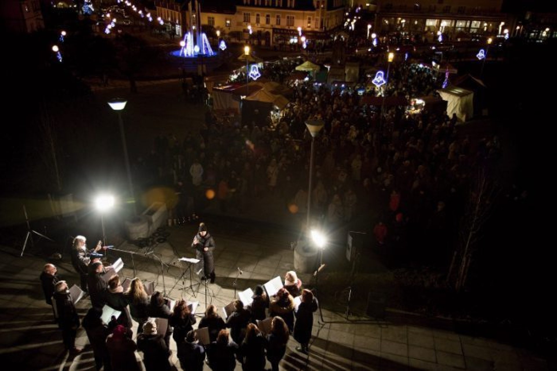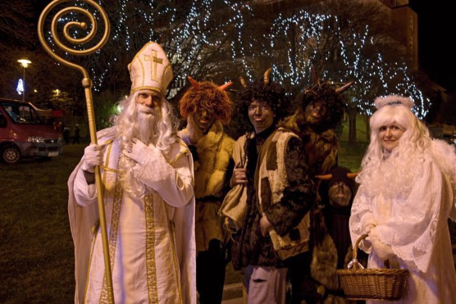 V programu prvního dne nechybělo ani podávání starostenského čaje, jehož výtěžek jde na dobročinnost Korunce Luhačovice, ani přání starosty a místostarosty všem občanům a návštěvníkům. Příchozí si mohli prohlédnout sovy a další dravé ptáky, které přivezla Stanice ochrany fauny z Hluku, k vidění byla i kovářská práce představená SOŠ Luhačovice a samozřejmě řada různých řemeslných výrobků, dobrot a horkých nápojů u mnoha stánků na náměstí před radnicí i v ulici Dr. Veselého. Návštěvníkům zazpíval krásné vánoční písně a koledy sbor Janáček, zahráli Trubači ZUŠ Luhačovice a na jarmarku se také pohybovala celá řada andělů. Procházeli jím vysocí andělé na chůdách v podání členů souboru Divadlo Chůdadlo. Na místo dorazili ale i andílci, kteří od zámku přišli průvodem pořádaným DDM Luhačovice. A anděl nechyběl ani v mikulášské družině, která byla na jarmarku také k vidění. Po rozsvícení vánočního stromu a ohňostroji uzavřel páteční program navazující Adventní benefiční koncert luhačovické Charity v místním kostele.