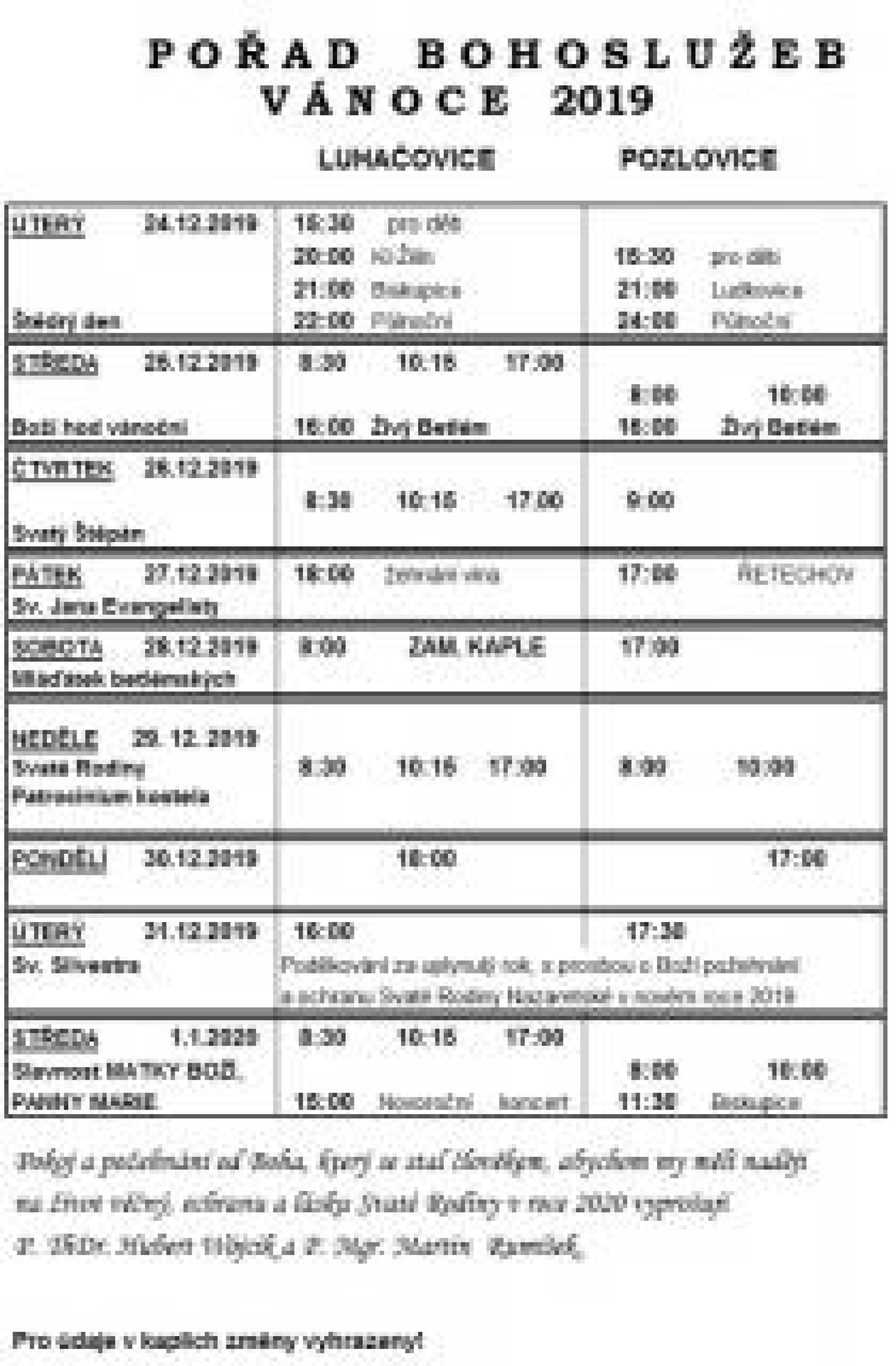 Termíny bohoslužeb