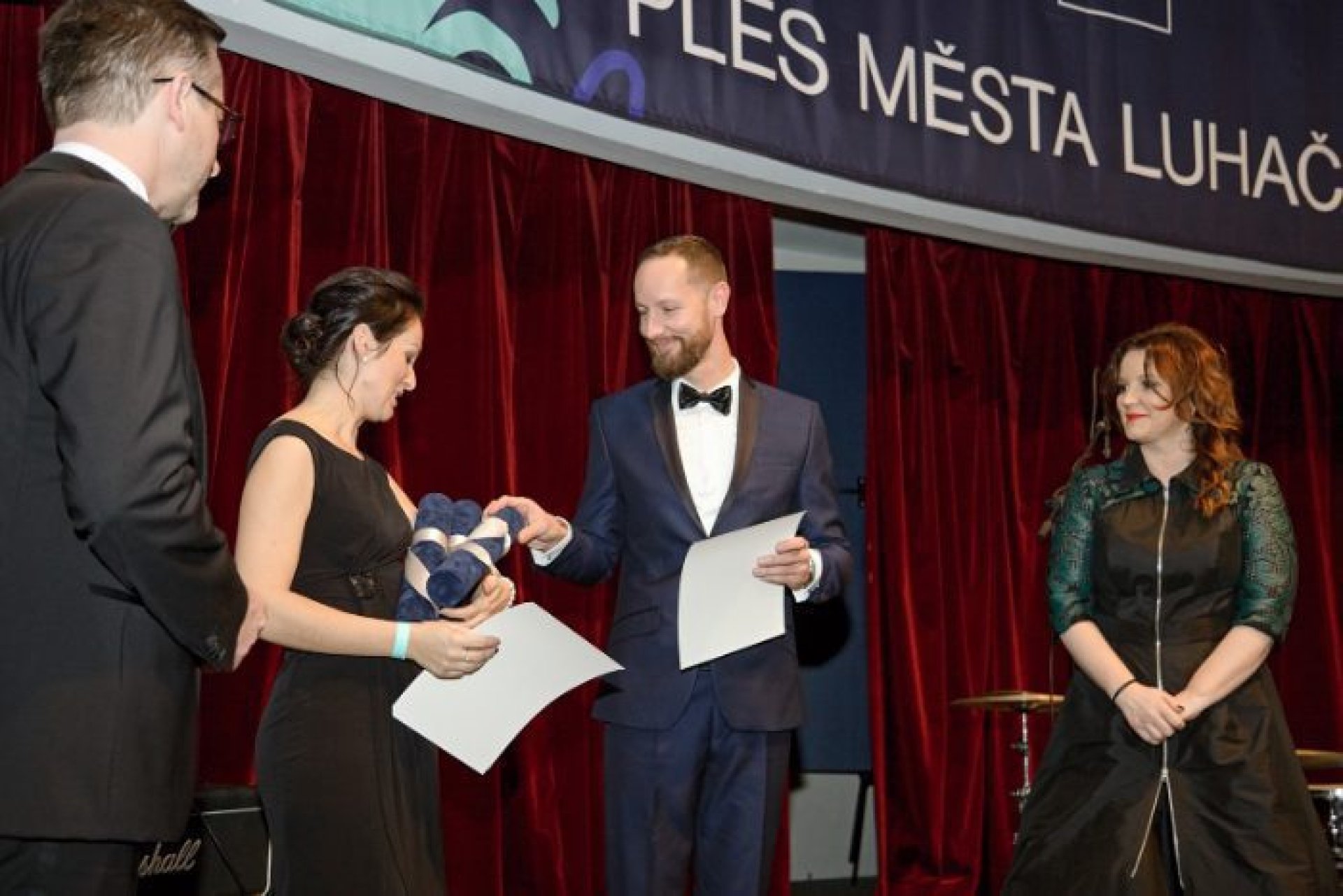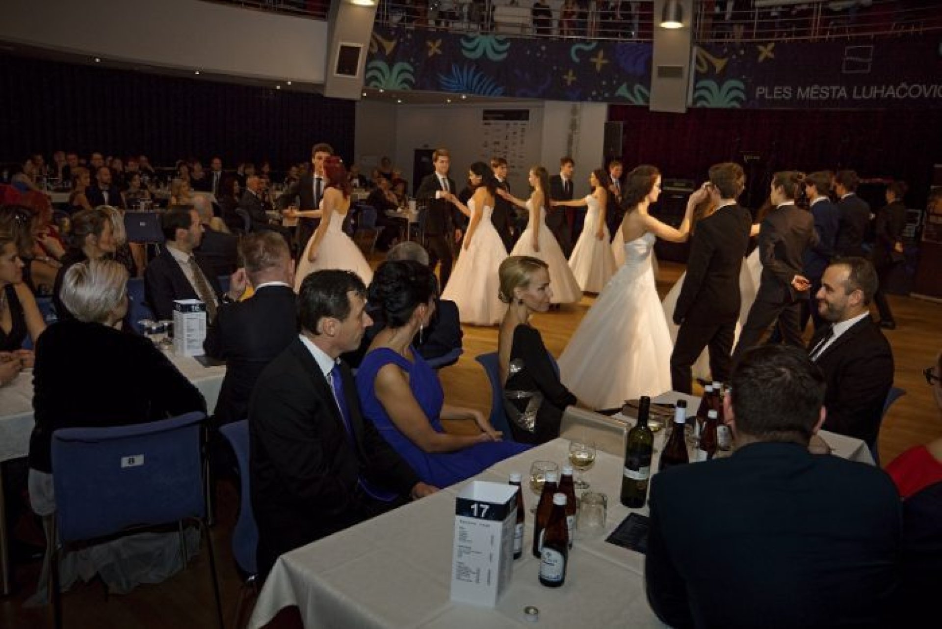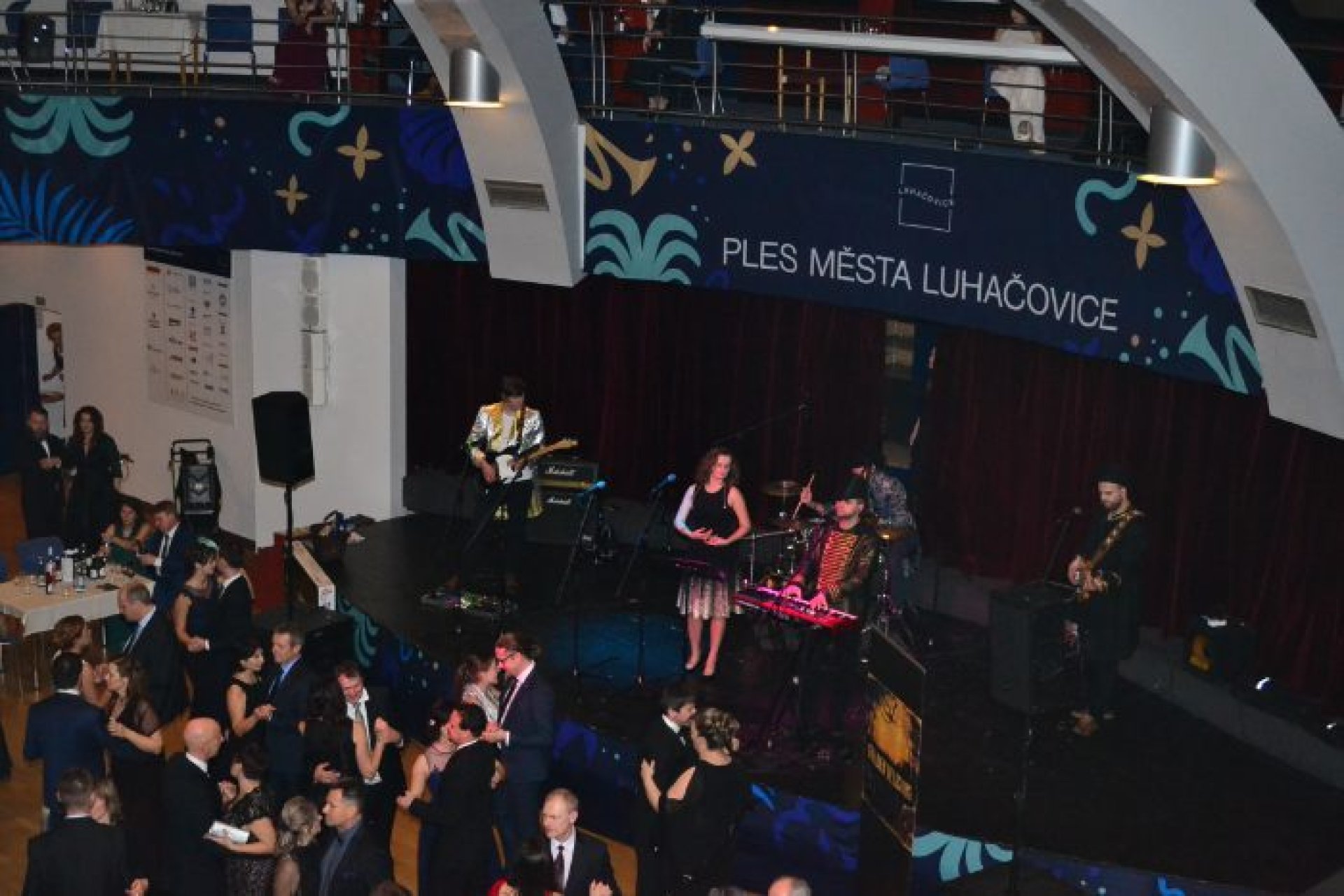Podobné nadšení panovalo i v možnosti podpořit ples sponzorsky ze strany podnikatelů a firem z regionu. Celkem ples podpořilo neuvěřitelných 44 firem. Velkým lákadlem byla moderátorská dvojice zvučných jmen, která plesem provázela - Mahulena Bočanová a Marek Vašut. Po úvodní fanfáře a předtančení členů tanečního klubu Fortuna patřilo slovo starostovi města Marianu Ležákovi. Ten premiérový ročník nové společenské akce oficiálně zahájil se svou chotí prvním tancem. Večer plný tance, hudby a zábavy nabídl řadu vystoupení na hlavním sále Rondo i v dalších prostorách. V Rondu se Prestige Symphony Orchestra, pěvecky podpořená herci Slováckého divadla, hudebně střídala s kapelou Golden Delicious frontmena, muzikanta a známého divadelního herce Tomáše Davida. Představili se nadějní tanečníci Kateřina Amálie Rumpíková a Filip Přibyl, mladé hudební skupiny Avarom Dnabseulb a Nightingales, cimbálová muzika Malého Zálesí, pěvecký Sbor Janáček, medailista z mistrovství světa v aerobiku Jáchym Hanák a Dívčí saxofonový orchestr, který vítal všechny již při příchodu na akci. Brzy po zahájení programu byly předány ceny starosty města za mimořádný přínos pro Luhačovice. Dvě ocenění byla vzpomínkou na vynikající osobnosti, jejichž odkaz je pro Luhačovice stále živý. Za mimořádný přínos lázeňství byla udělena in memoriam cena MVDr. Antonínu Plachému, zakladateli významné lázeňské skupiny Royal Spa, která dnes působí nejen v Luhačovicích. Za mimořádný přínos sportu pak bylo uděleno ocenění in memoriam Petru Mikulcovi, který byl dlouholetým starostou luhačovického Sokola a předsedou TJ Slovan. Třetí ocenění nepatří jediné osobě, ale hned celé skupině luhačovických nadšenců. Za přínos k rozvoji kultury města byl oceněn Luhačovický okrašlovací spolek Calma, který se věnuje zejména pořádání různých akcí v historických kostýmech. Dotvářením jedinečné atmosféry Luhačovic přispěl spolek také k zisku prestižního titulu Evropská destinace roku, který město získalo koncem minulého roku. Po převzetí ceny pro Calmu se představila vystoupením taneční sekce okrašlovacího spolku zvaná Crazy Flappers. V programu plesu rozhodně nemohla chybět bohatá tombola, jejíž výtěžek je určen na dobročinnost Korunce Luhačovice. Vítané občerstvení všem nabídl vynikající raut, milovníky vína potěšila degustace vybraných vín a jako památku na skvělý ples si mohli příchozí udělat fotku ve stylovém fotokoutku.