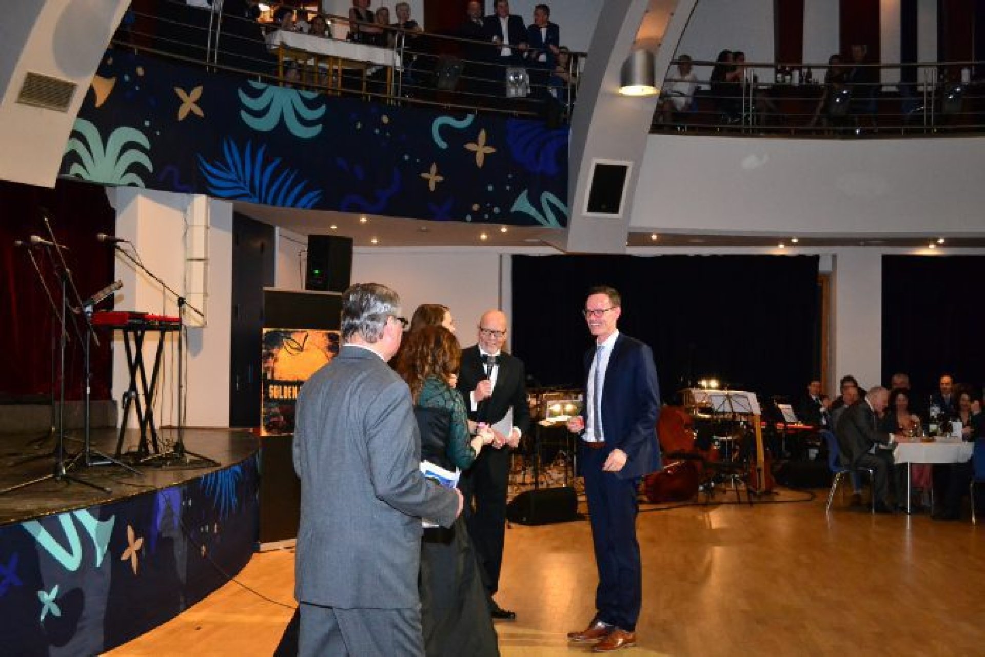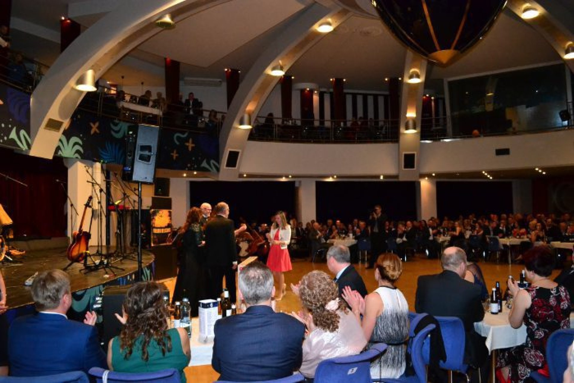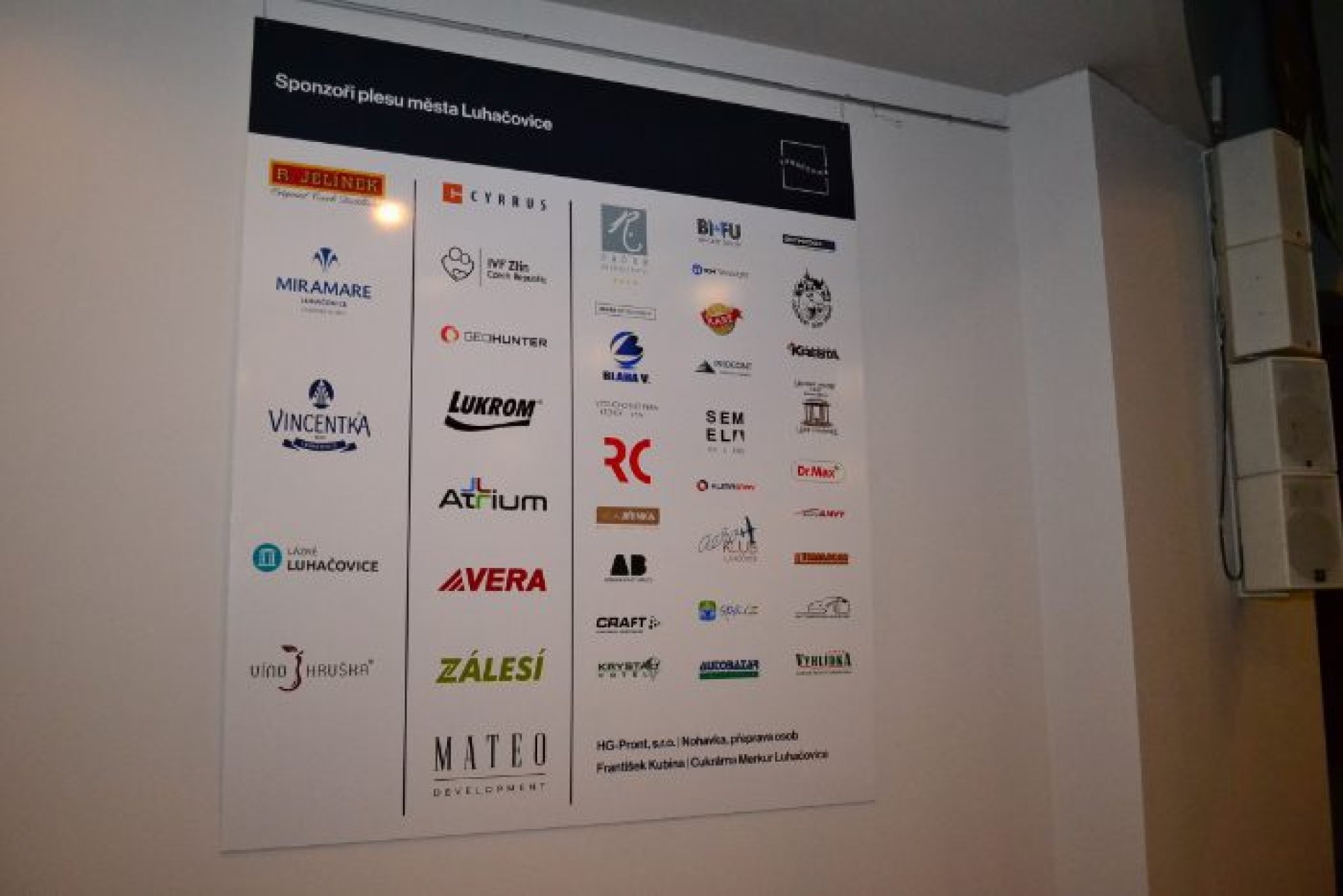 Podobné nadšení panovalo i v možnosti podpořit ples sponzorsky ze strany podnikatelů a firem z regionu. Celkem ples podpořilo neuvěřitelných 44 firem. Velkým lákadlem byla moderátorská dvojice zvučných jmen, která plesem provázela - Mahulena Bočanová a Marek Vašut. Po úvodní fanfáře a předtančení členů tanečního klubu Fortuna patřilo slovo starostovi města Marianu Ležákovi. Ten premiérový ročník nové společenské akce oficiálně zahájil se svou chotí prvním tancem. Večer plný tance, hudby a zábavy nabídl řadu vystoupení na hlavním sále Rondo i v dalších prostorách. V Rondu se Prestige Symphony Orchestra, pěvecky podpořená herci Slováckého divadla, hudebně střídala s kapelou Golden Delicious frontmena, muzikanta a známého divadelního herce Tomáše Davida. Představili se nadějní tanečníci Kateřina Amálie Rumpíková a Filip Přibyl, mladé hudební skupiny Avarom Dnabseulb a Nightingales, cimbálová muzika Malého Zálesí, pěvecký Sbor Janáček, medailista z mistrovství světa v aerobiku Jáchym Hanák a Dívčí saxofonový orchestr, který vítal všechny již při příchodu na akci. Brzy po zahájení programu byly předány ceny starosty města za mimořádný přínos pro Luhačovice. Dvě ocenění byla vzpomínkou na vynikající osobnosti, jejichž odkaz je pro Luhačovice stále živý. Za mimořádný přínos lázeňství byla udělena in memoriam cena MVDr. Antonínu Plachému, zakladateli významné lázeňské skupiny Royal Spa, která dnes působí nejen v Luhačovicích. Za mimořádný přínos sportu pak bylo uděleno ocenění in memoriam Petru Mikulcovi, který byl dlouholetým starostou luhačovického Sokola a předsedou TJ Slovan. Třetí ocenění nepatří jediné osobě, ale hned celé skupině luhačovických nadšenců. Za přínos k rozvoji kultury města byl oceněn Luhačovický okrašlovací spolek Calma, který se věnuje zejména pořádání různých akcí v historických kostýmech. Dotvářením jedinečné atmosféry Luhačovic přispěl spolek také k zisku prestižního titulu Evropská destinace roku, který město získalo koncem minulého roku. Po převzetí ceny pro Calmu se představila vystoupením taneční sekce okrašlovacího spolku zvaná Crazy Flappers. V programu plesu rozhodně nemohla chybět bohatá tombola, jejíž výtěžek je určen na dobročinnost Korunce Luhačovice. Vítané občerstvení všem nabídl vynikající raut, milovníky vína potěšila degustace vybraných vín a jako památku na skvělý ples si mohli příchozí udělat fotku ve stylovém fotokoutku.