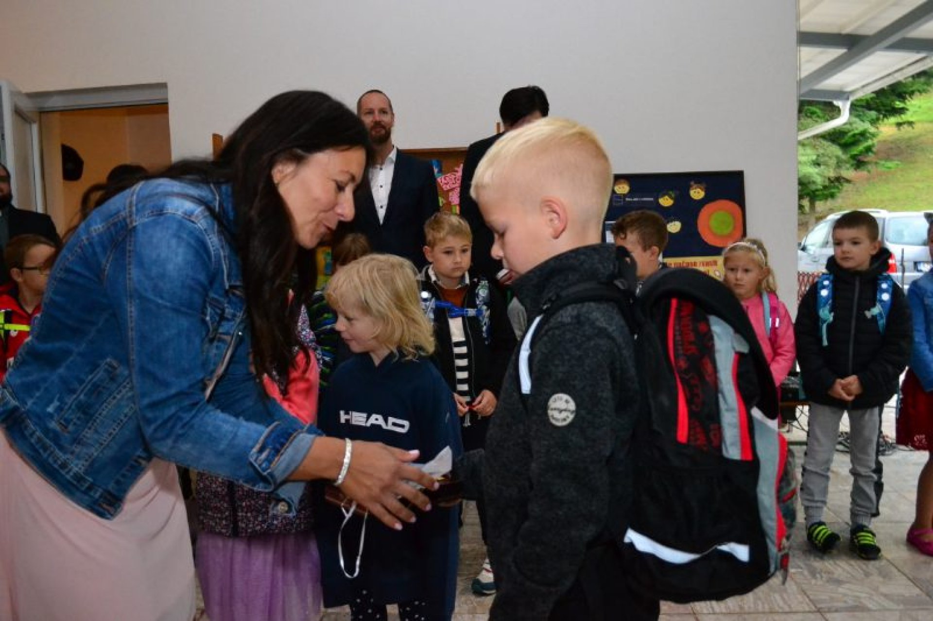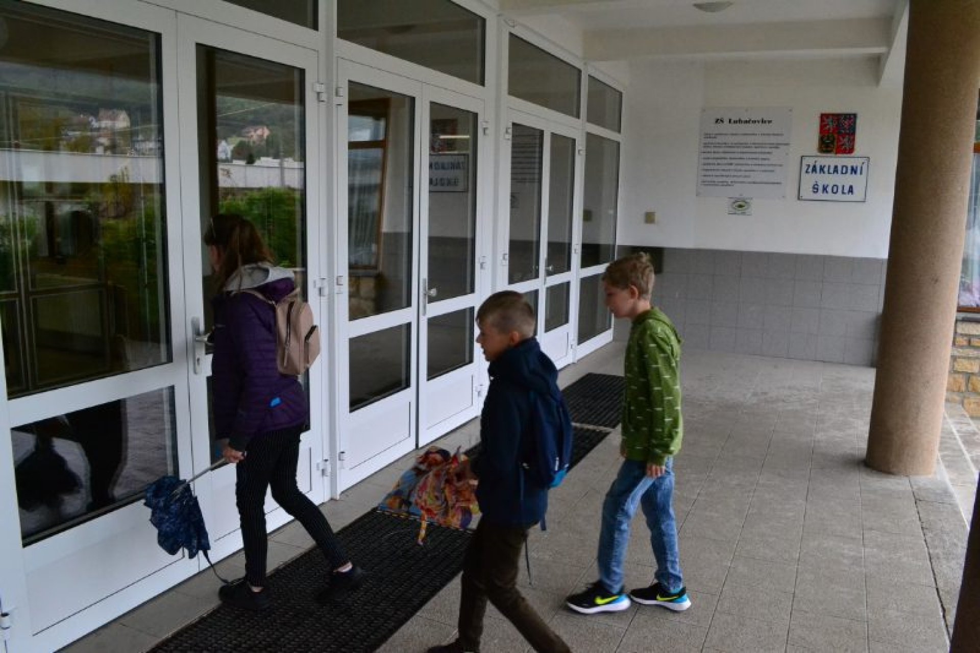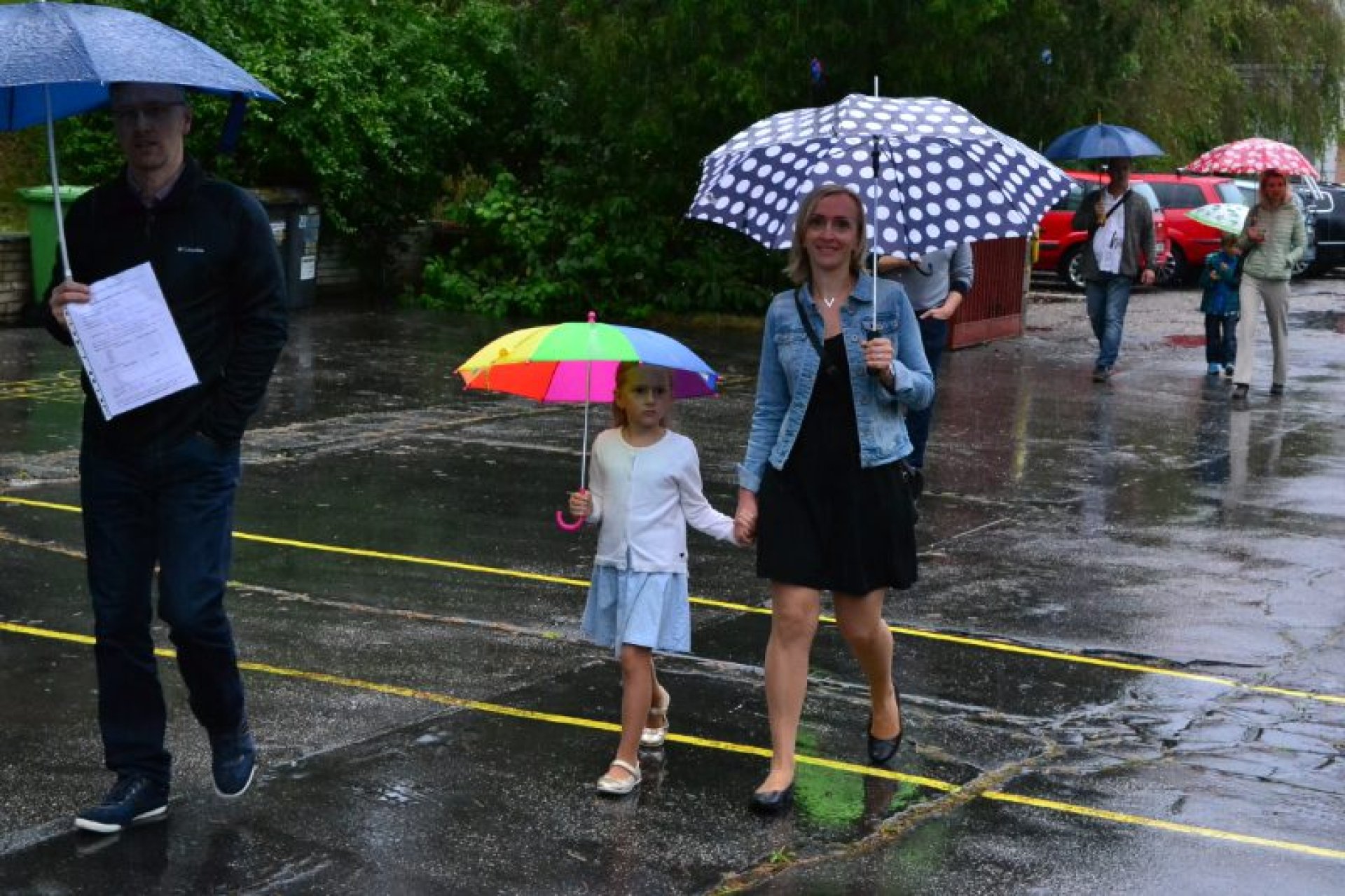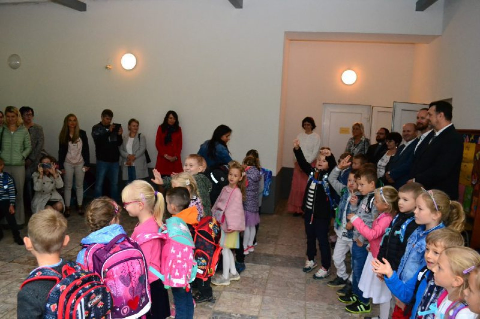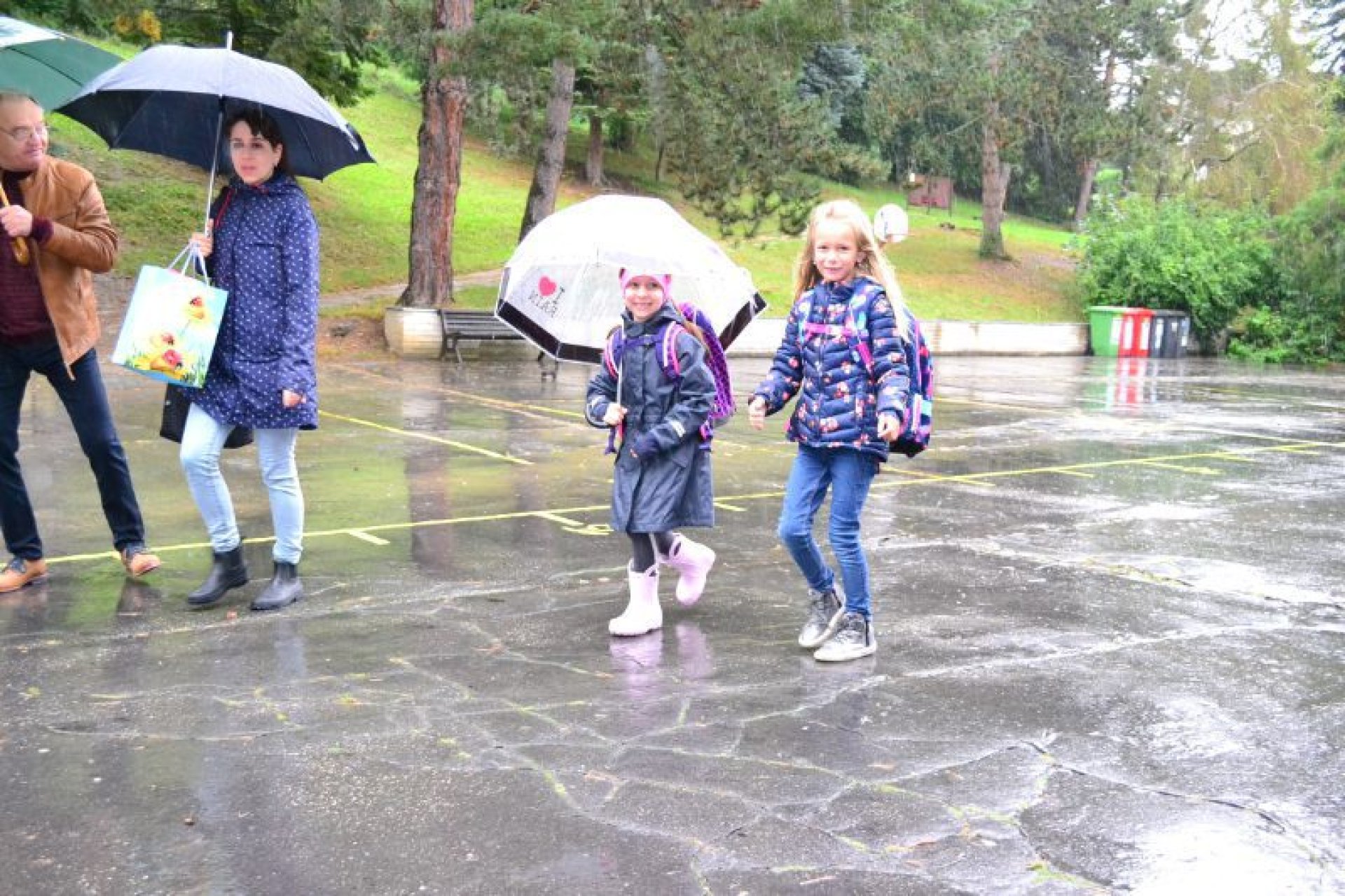 Příjemný začátek školy nepokazilo ani to, že ho provázelo deštivé ráno. Někteří kluci si tak aspoň mohli před začátkem setkání u školy zaskotačit s deštníky. Řada prvňáčků zamířila na svůj velký den už s aktovkou, většina s nadšením, jak to bývá někteří i s trochou obav, jak to zvládnou.