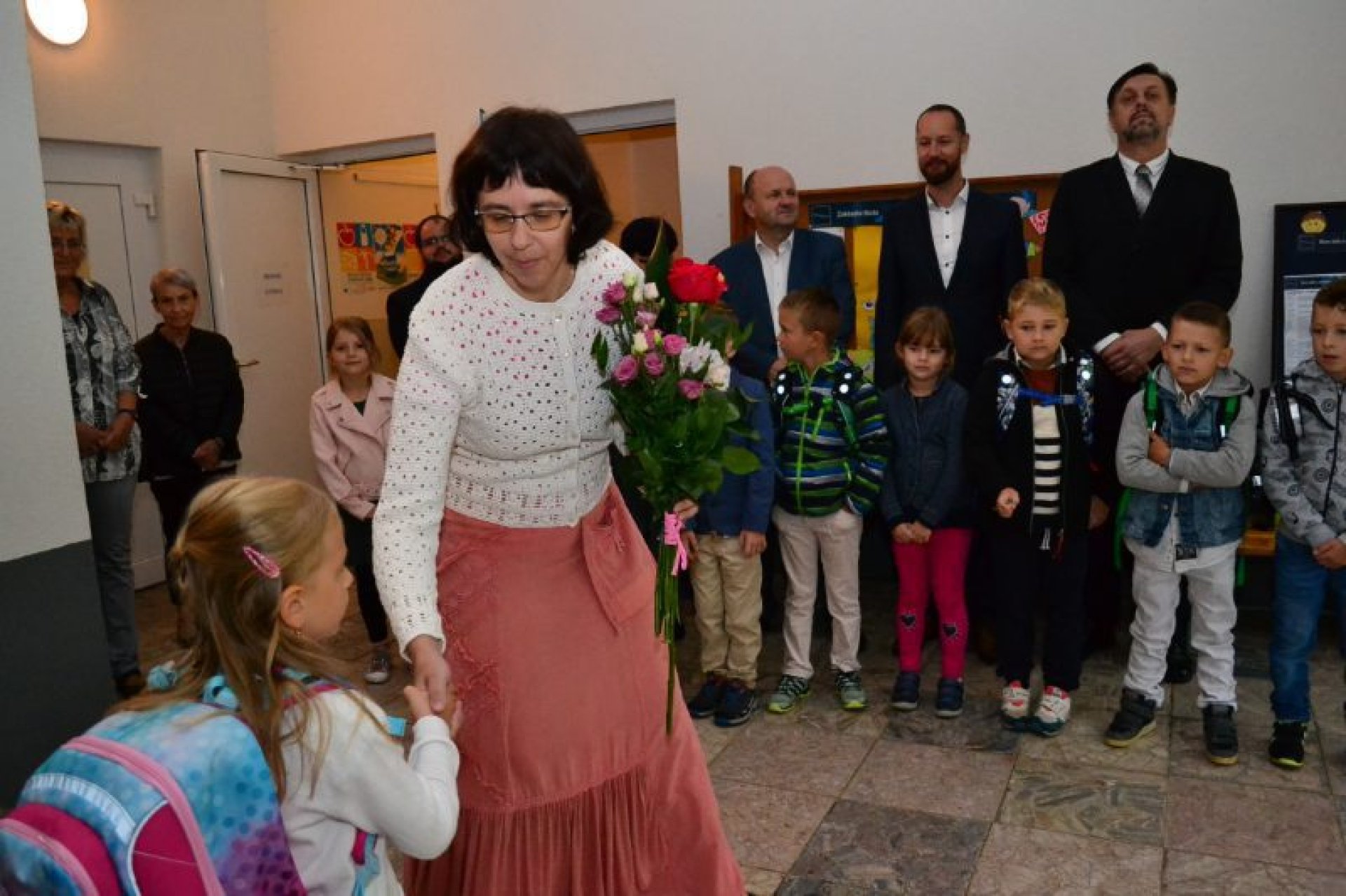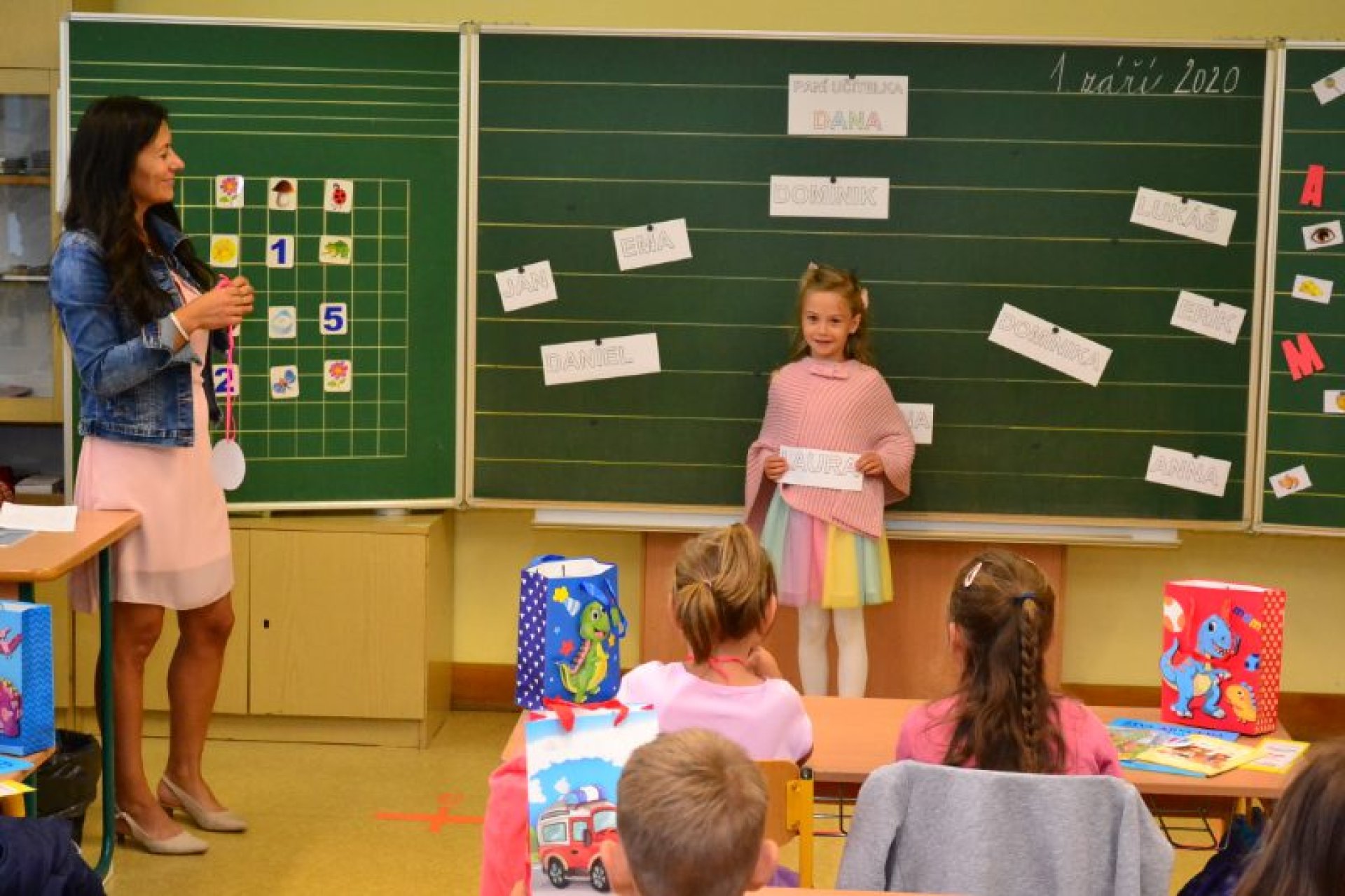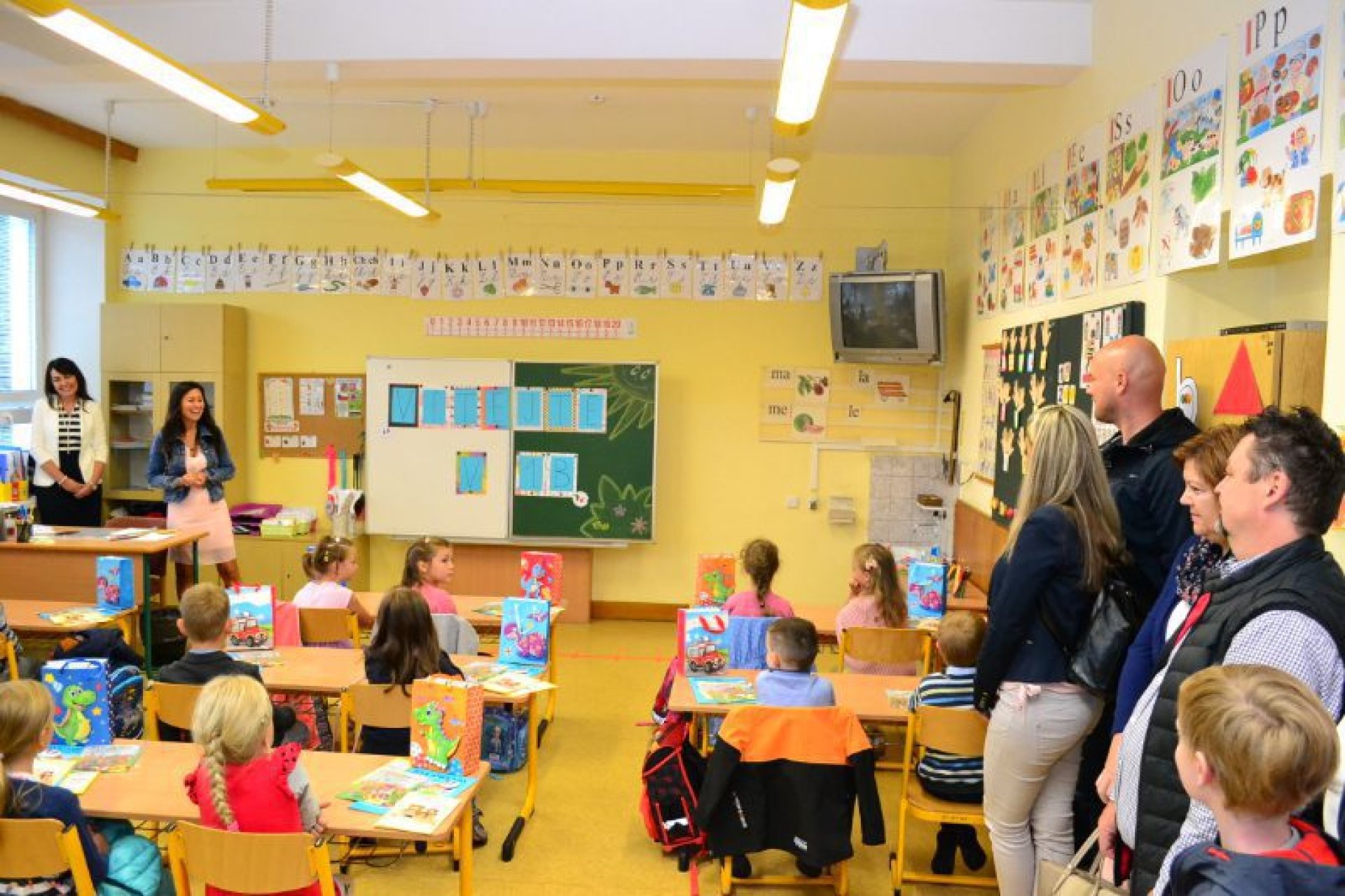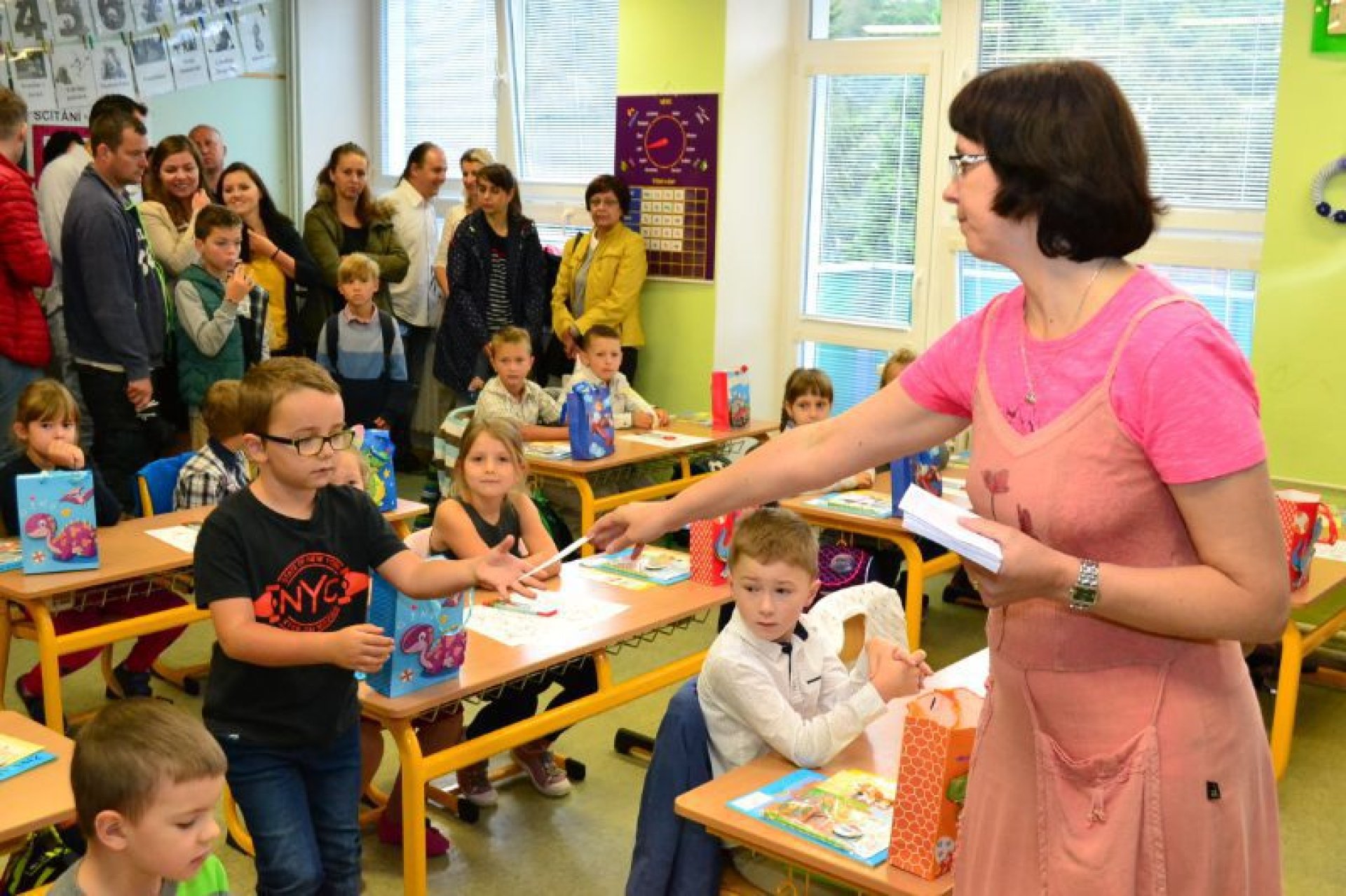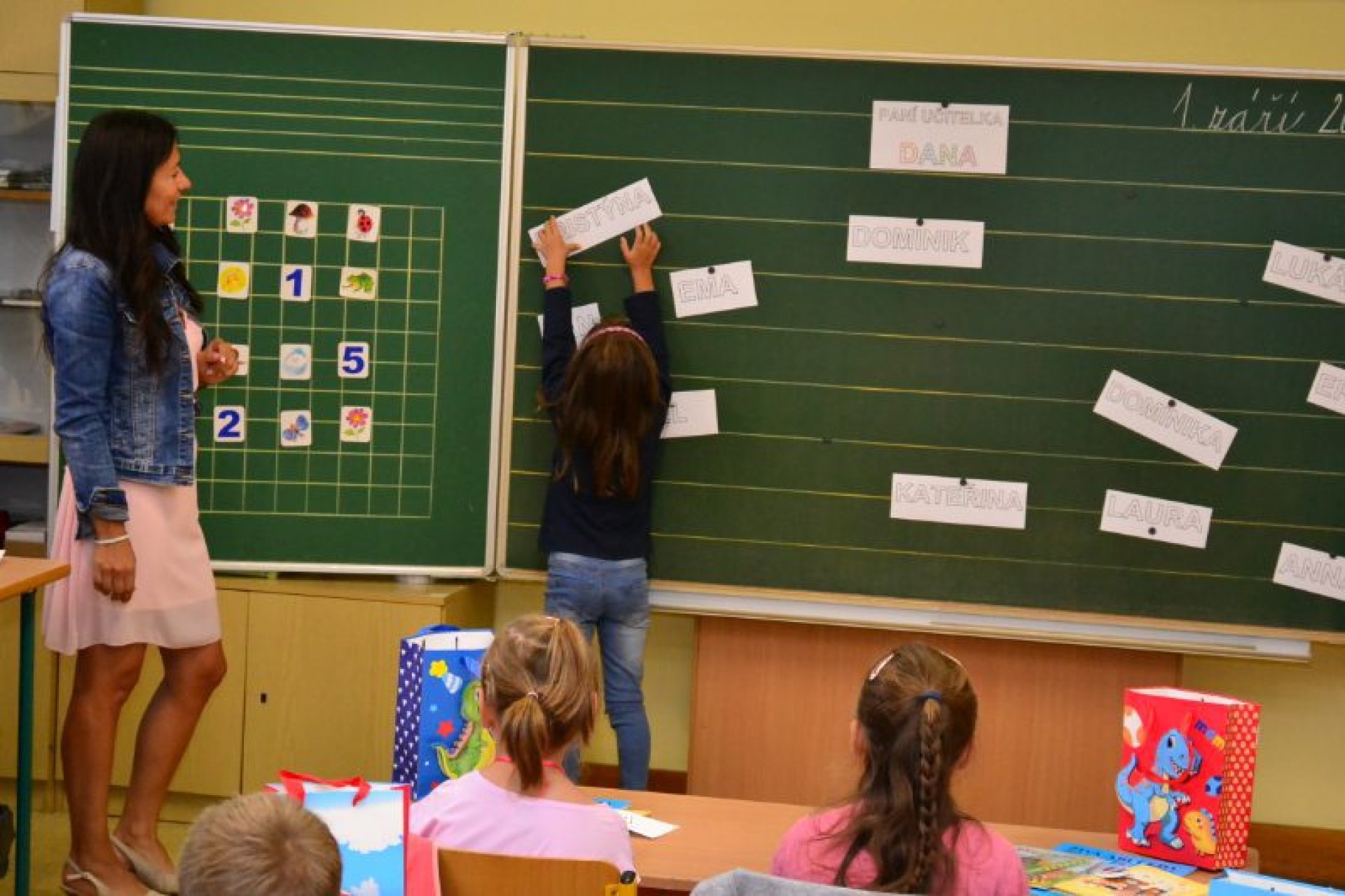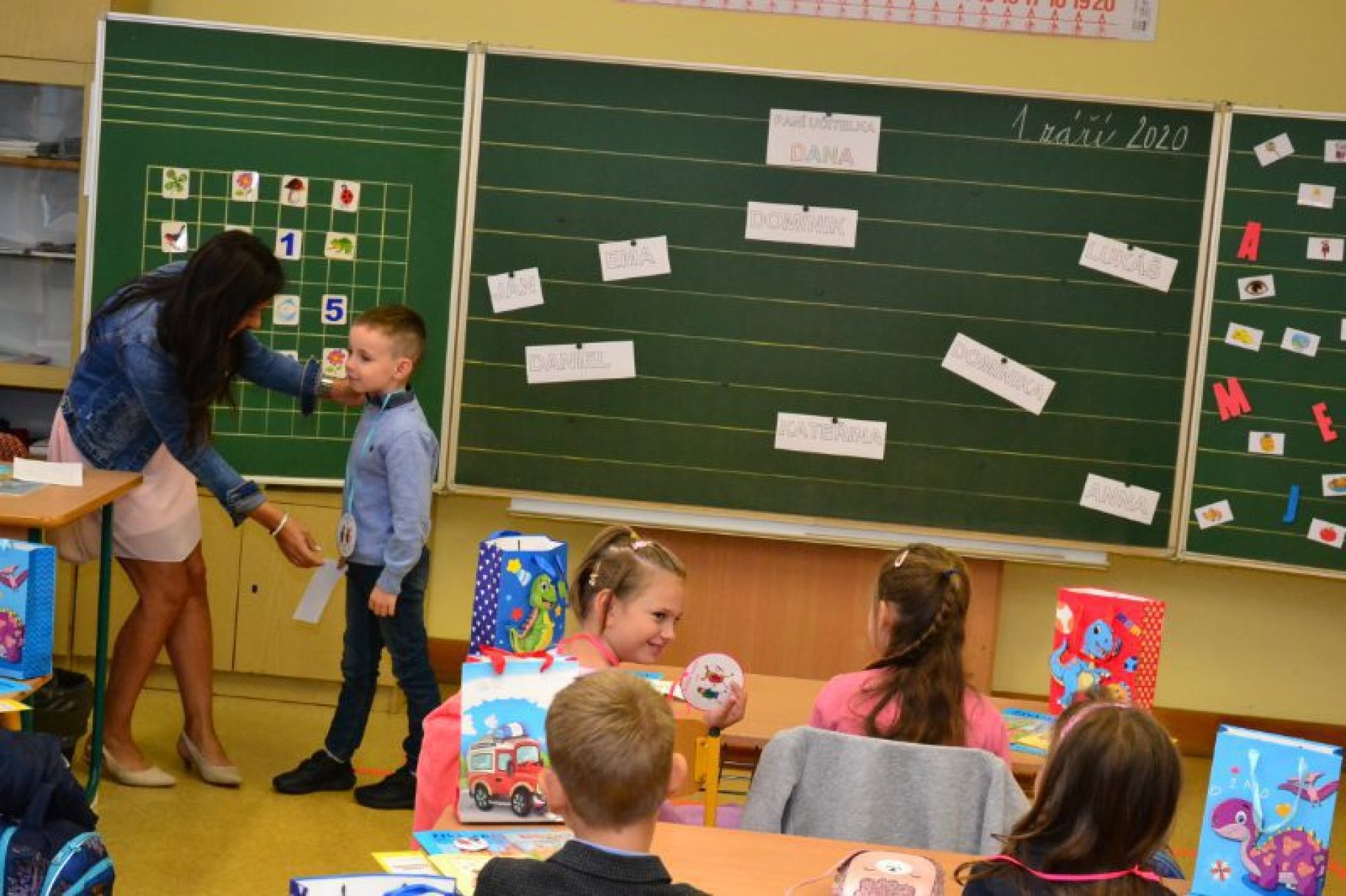 Po uvítání školáků a jejich rodičů byly jednotlivé děti rozřazeny do tříd a pozdravily se se svou třídní učitelkou. V řadě případů nechyběla od dětí na uvítanou pro paní učitelku květina nebo bonboniéra. Na ZŠ Luhačovice letos 1. A povede Mgr. Vendula Mrkvičková, 1.B Mgr. Dana Josefíková. Spolu s nimi zamířily děti do svých tříd, kam je následovali i rodiče. Pro kluky a holky byly připraveny první úkoly, jako najít své napsané jméno, ale i spousta dárků v podobě sešitů, psacích potřeb a dalších věcí. Na rodiče pak byla směřována řada důležitých informací o chodu školy, školní družiny a podobně. Rodiče prvňáků s trvalým bydlištěm ve městě také od radnice dostali finanční příspěvek na nákup školních pomůcek.