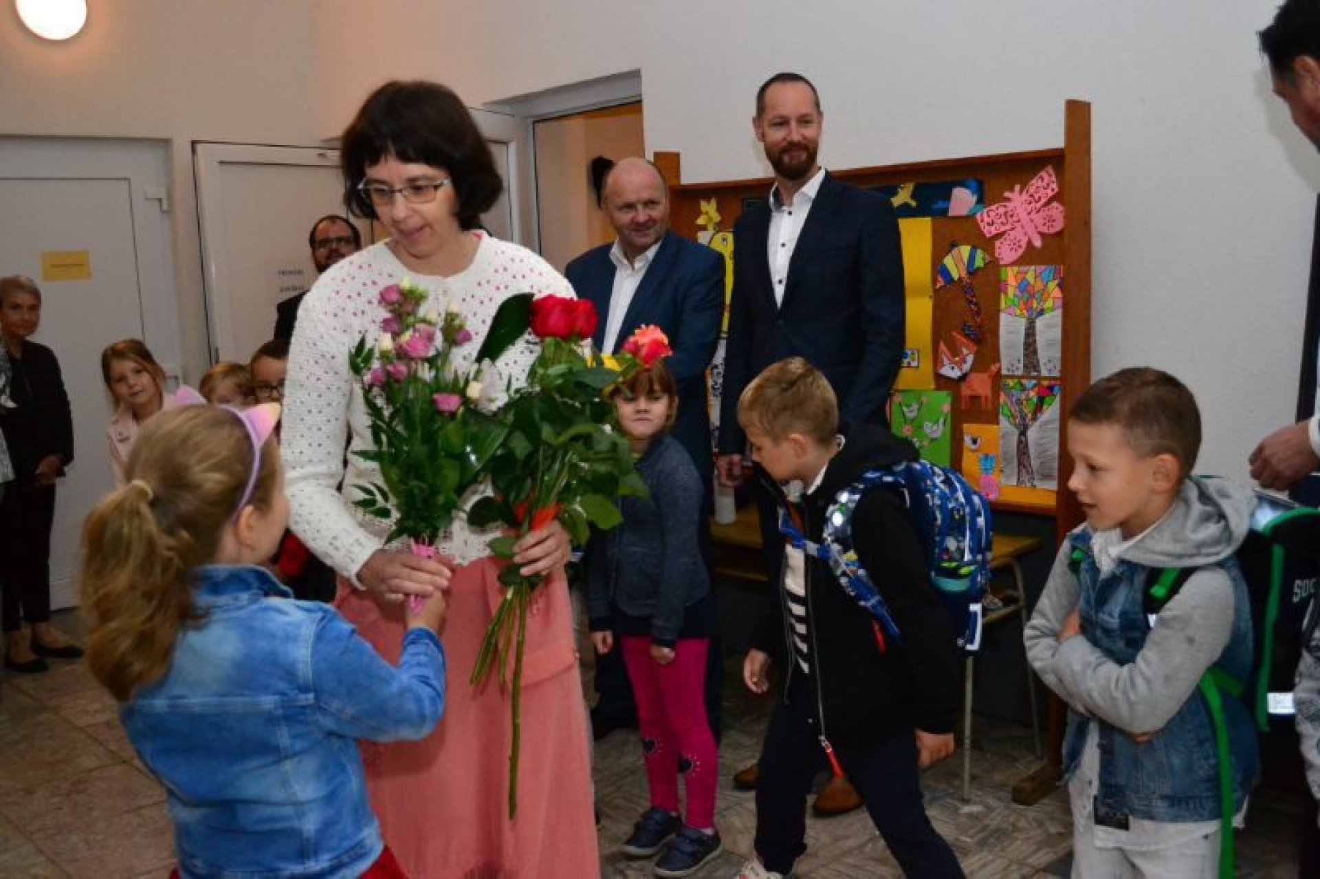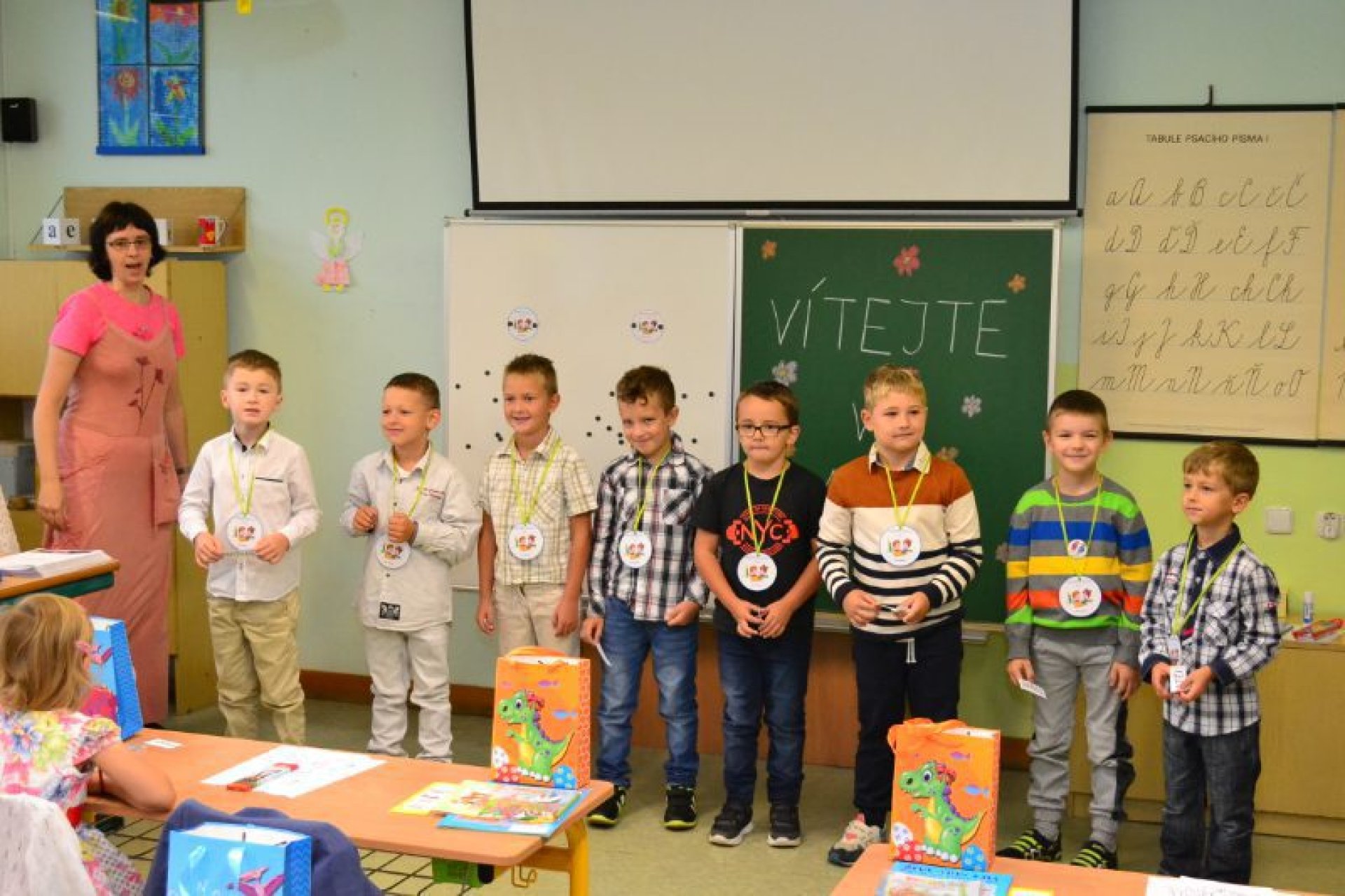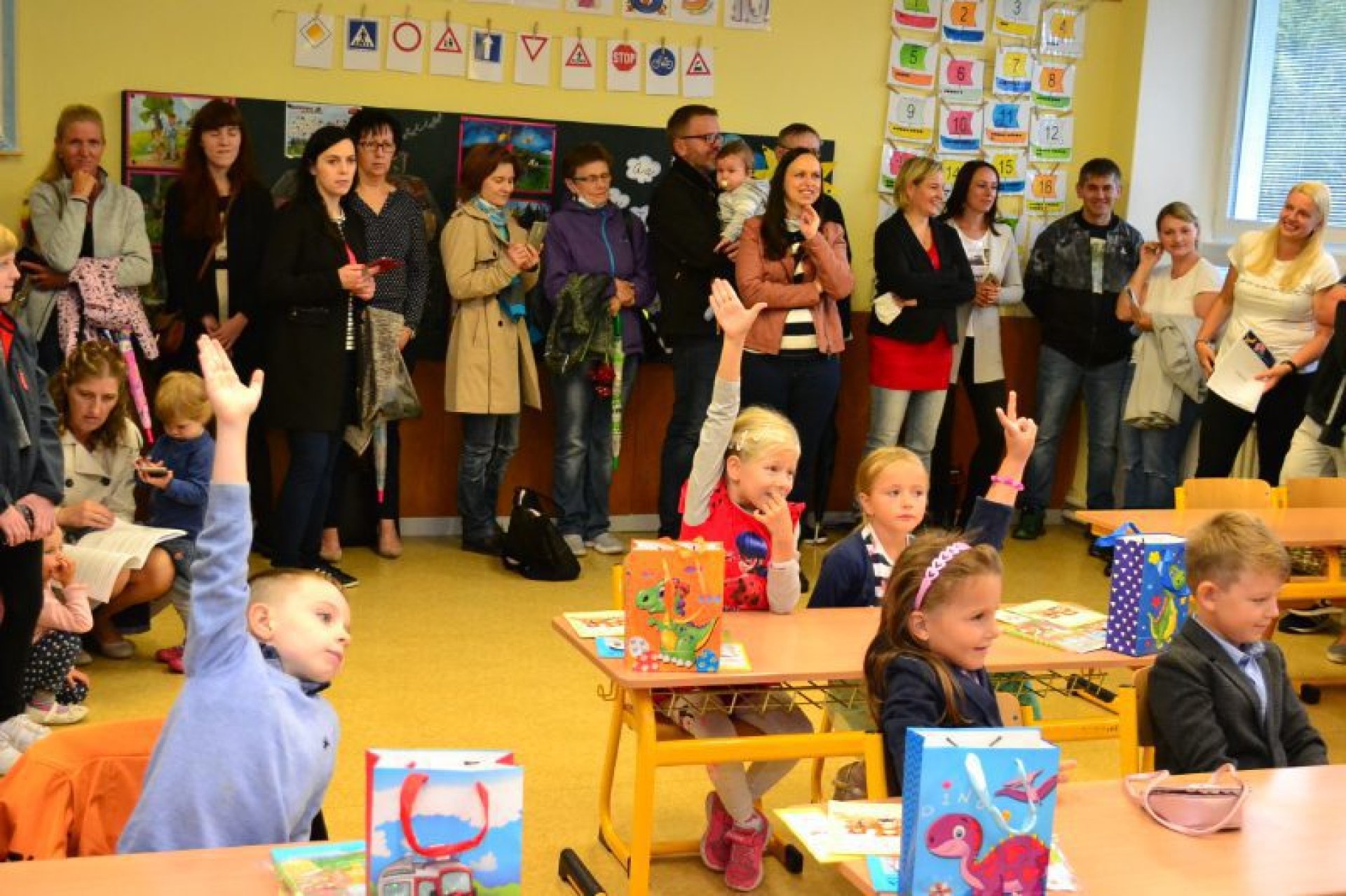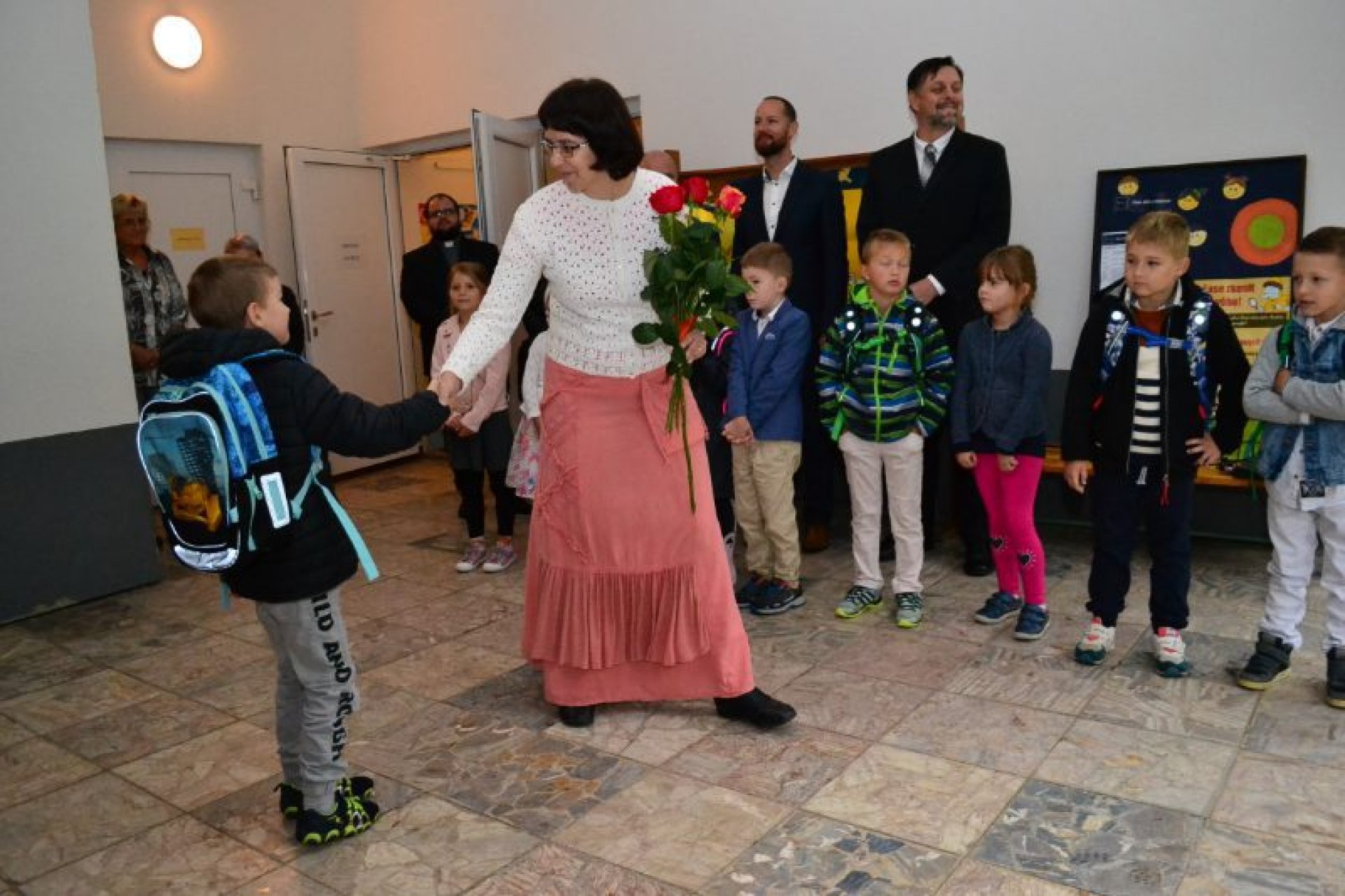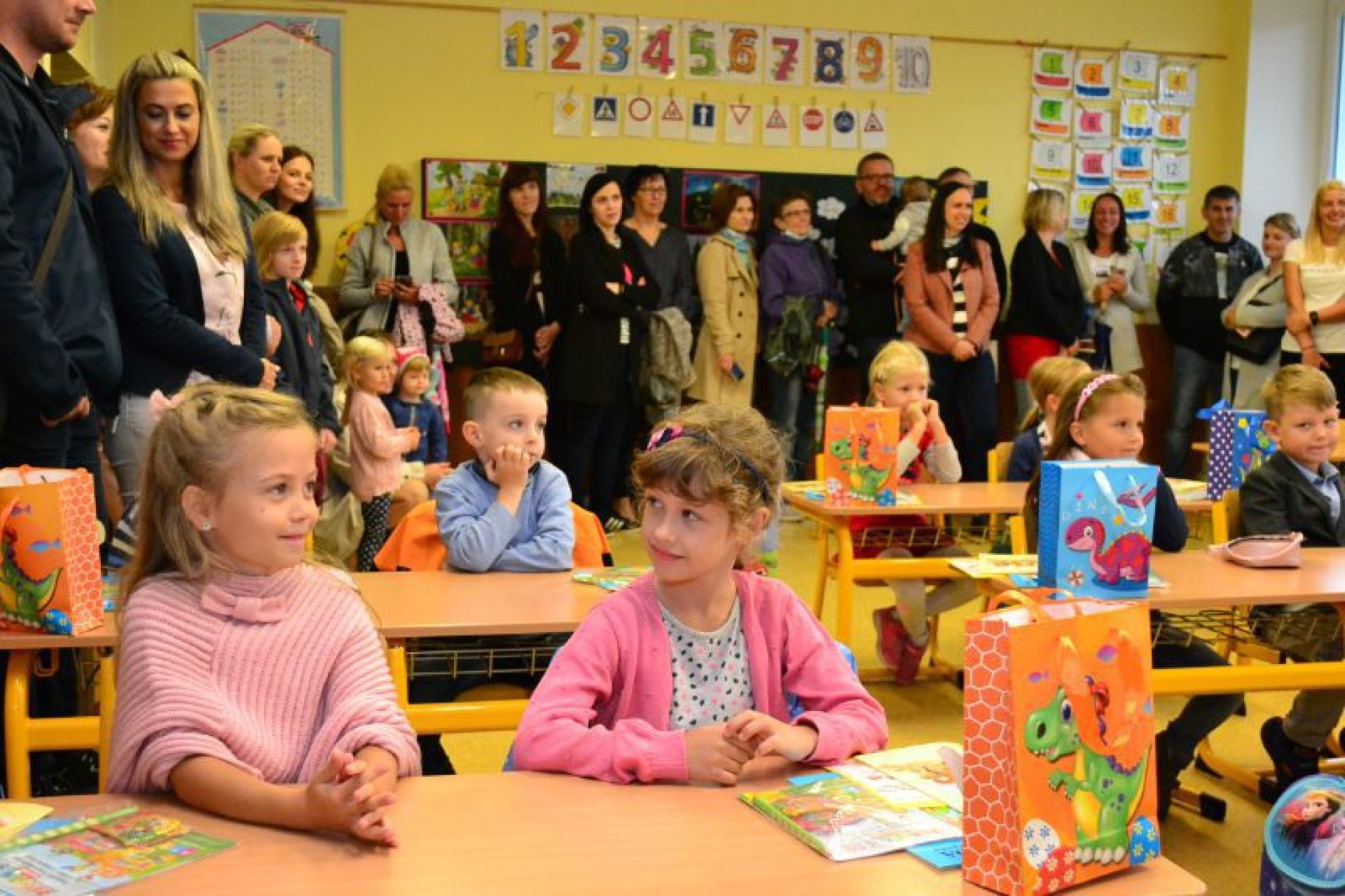Po uvítání školáků a jejich rodičů byly jednotlivé děti rozřazeny do tříd a pozdravily se se svou třídní učitelkou. V řadě případů nechyběla od dětí na uvítanou pro paní učitelku květina nebo bonboniéra. Na ZŠ Luhačovice letos 1. A povede Mgr. Vendula Mrkvičková, 1.B Mgr. Dana Josefíková. Spolu s nimi zamířily děti do svých tříd, kam je následovali i rodiče. Pro kluky a holky byly připraveny první úkoly, jako najít své napsané jméno, ale i spousta dárků v podobě sešitů, psacích potřeb a dalších věcí. Na rodiče pak byla směřována řada důležitých informací o chodu školy, školní družiny a podobně. Rodiče prvňáků s trvalým bydlištěm ve městě také od radnice dostali finanční příspěvek na nákup školních pomůcek.