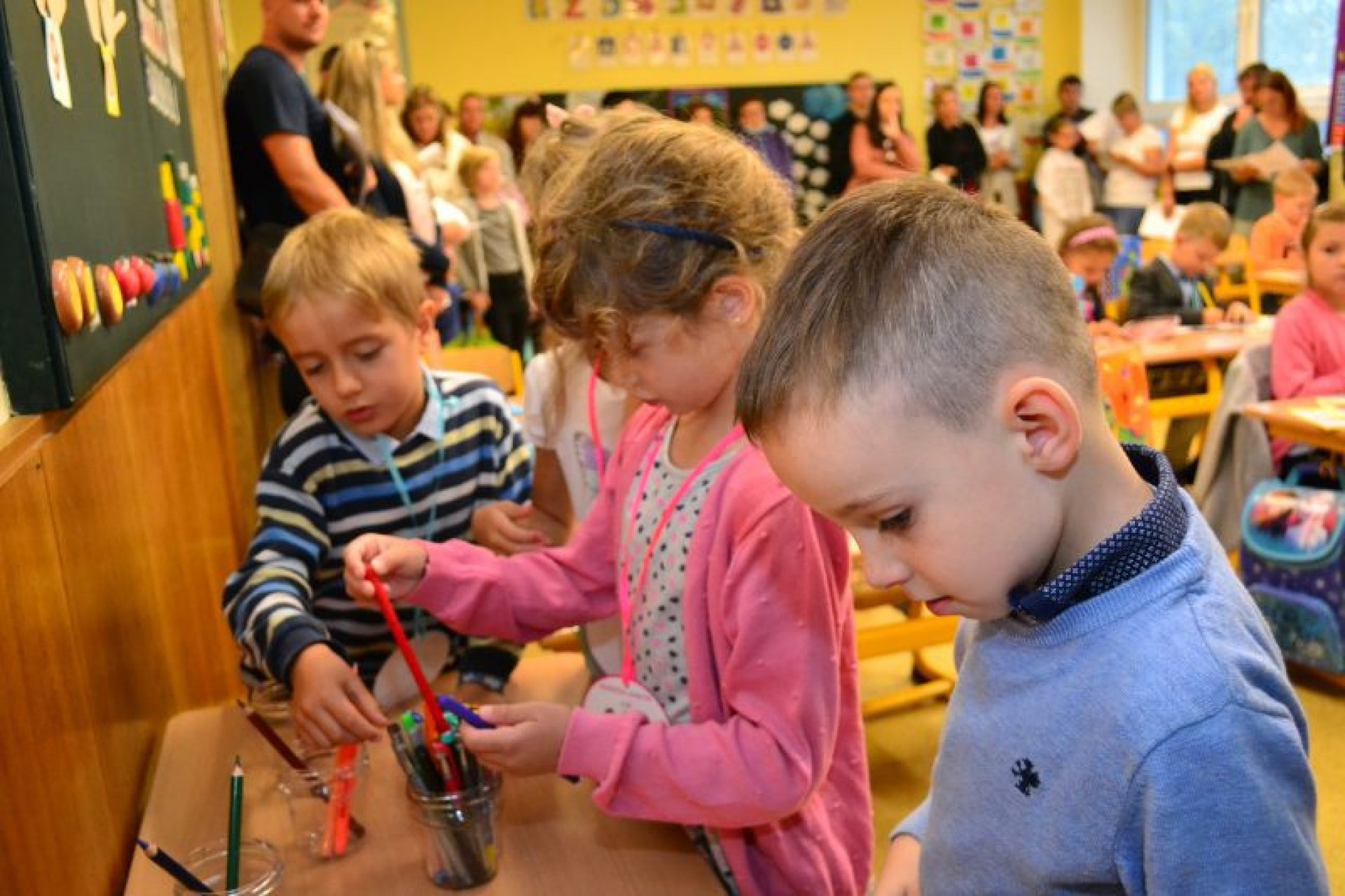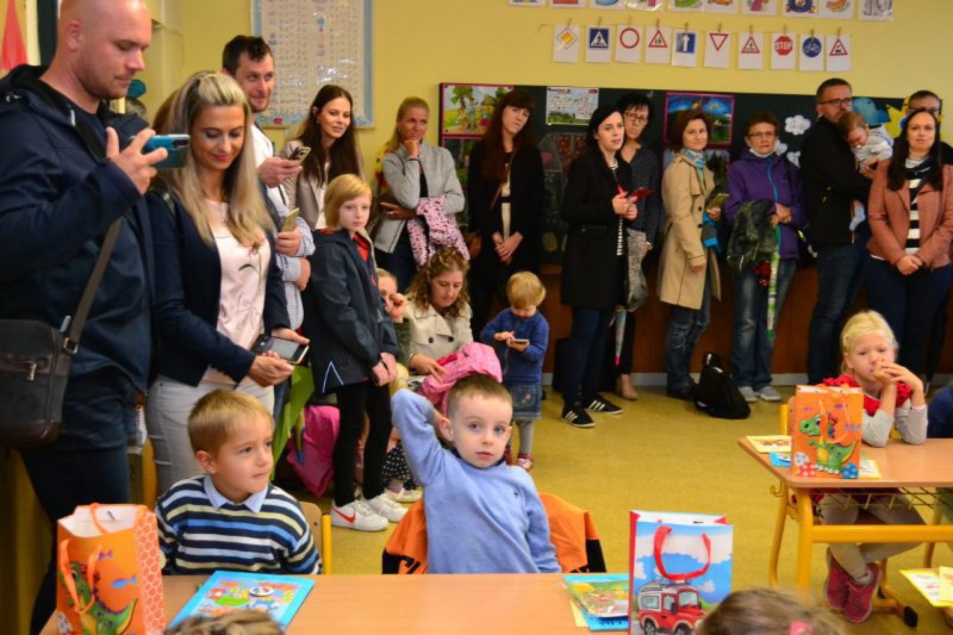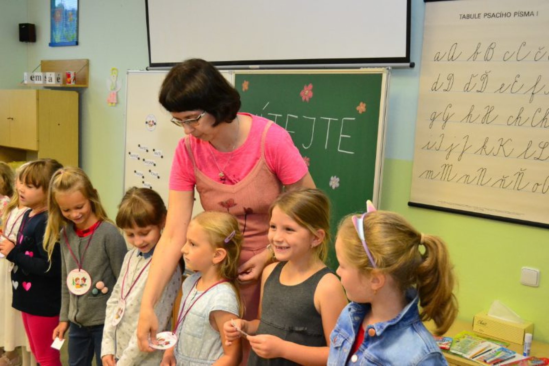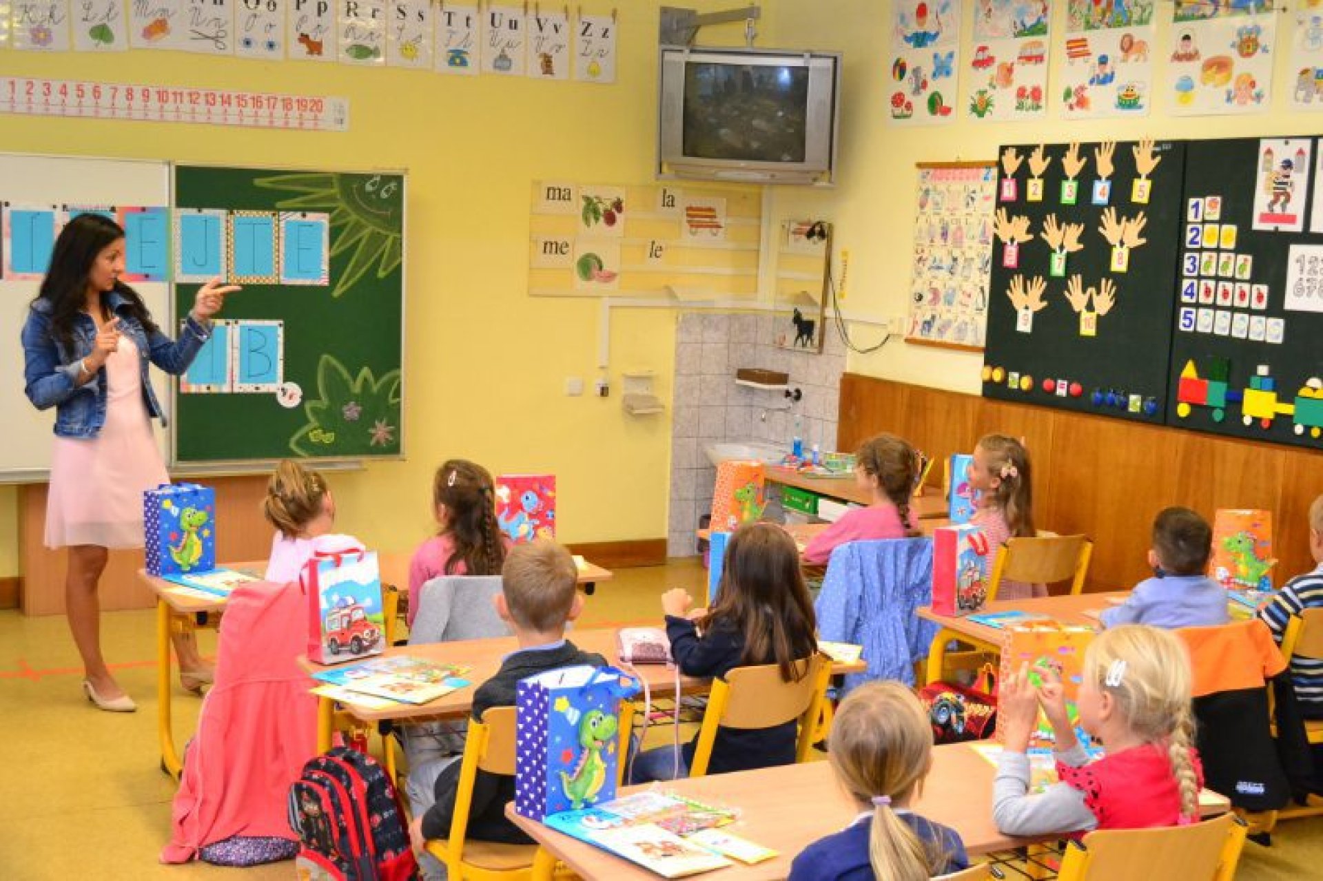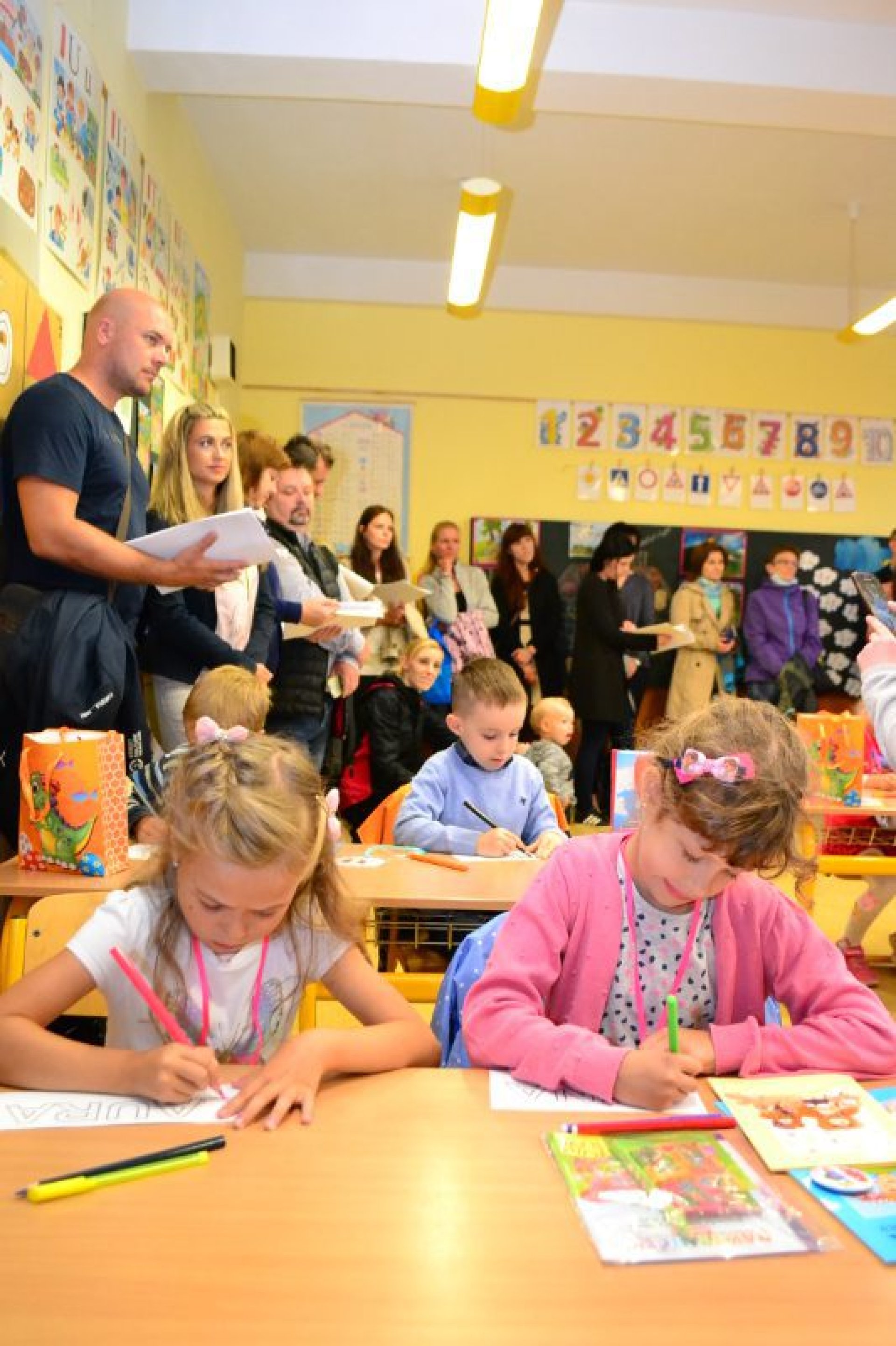 Po uvítání školáků a jejich rodičů byly jednotlivé děti rozřazeny do tříd a pozdravily se se svou třídní učitelkou. V řadě případů nechyběla od dětí na uvítanou pro paní učitelku květina nebo bonboniéra. Na ZŠ Luhačovice letos 1. A povede Mgr. Vendula Mrkvičková, 1.B Mgr. Dana Josefíková. Spolu s nimi zamířily děti do svých tříd, kam je následovali i rodiče. Pro kluky a holky byly připraveny první úkoly, jako najít své napsané jméno, ale i spousta dárků v podobě sešitů, psacích potřeb a dalších věcí. Na rodiče pak byla směřována řada důležitých informací o chodu školy, školní družiny a podobně. Rodiče prvňáků s trvalým bydlištěm ve městě také od radnice dostali finanční příspěvek na nákup školních pomůcek.