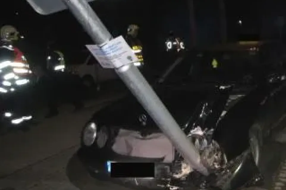 Mercedes při nehodě poškodil osvětlení přechodu