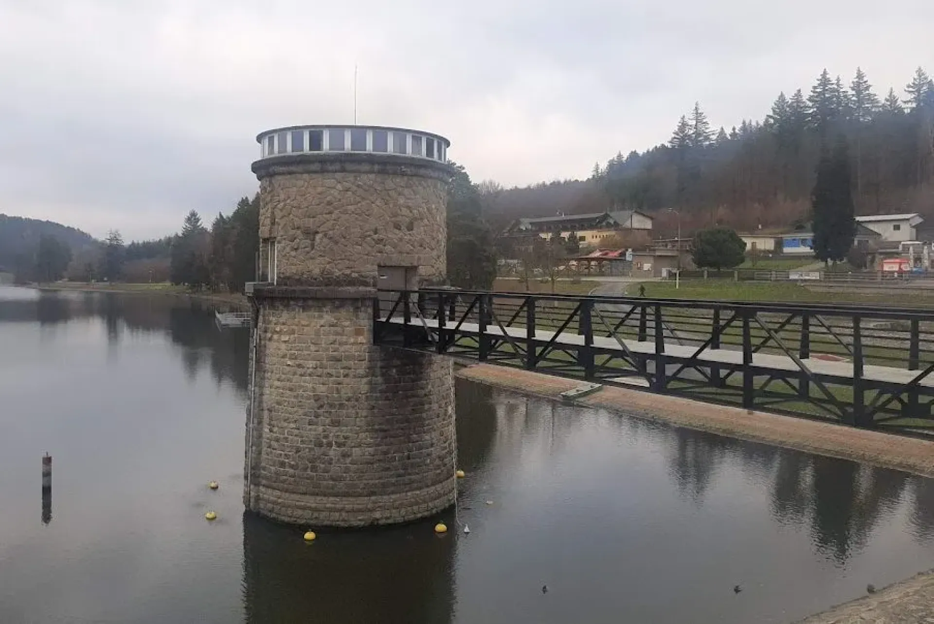 Otázka jednoduchá, ale odpověď vlastně až tak ne. Ještěže máme Janu Kučerovou z brněnské centrály Povodí Moravy. "Ne, nebydlí tam nikdo, je to jakási kancelář a taky zařízení k ovládání spodních výpustí," vysvětluje. Domněnku o tom, že odtud vede podvodní šachta pod celou přehradou, bohužel, nepotvrzuje.