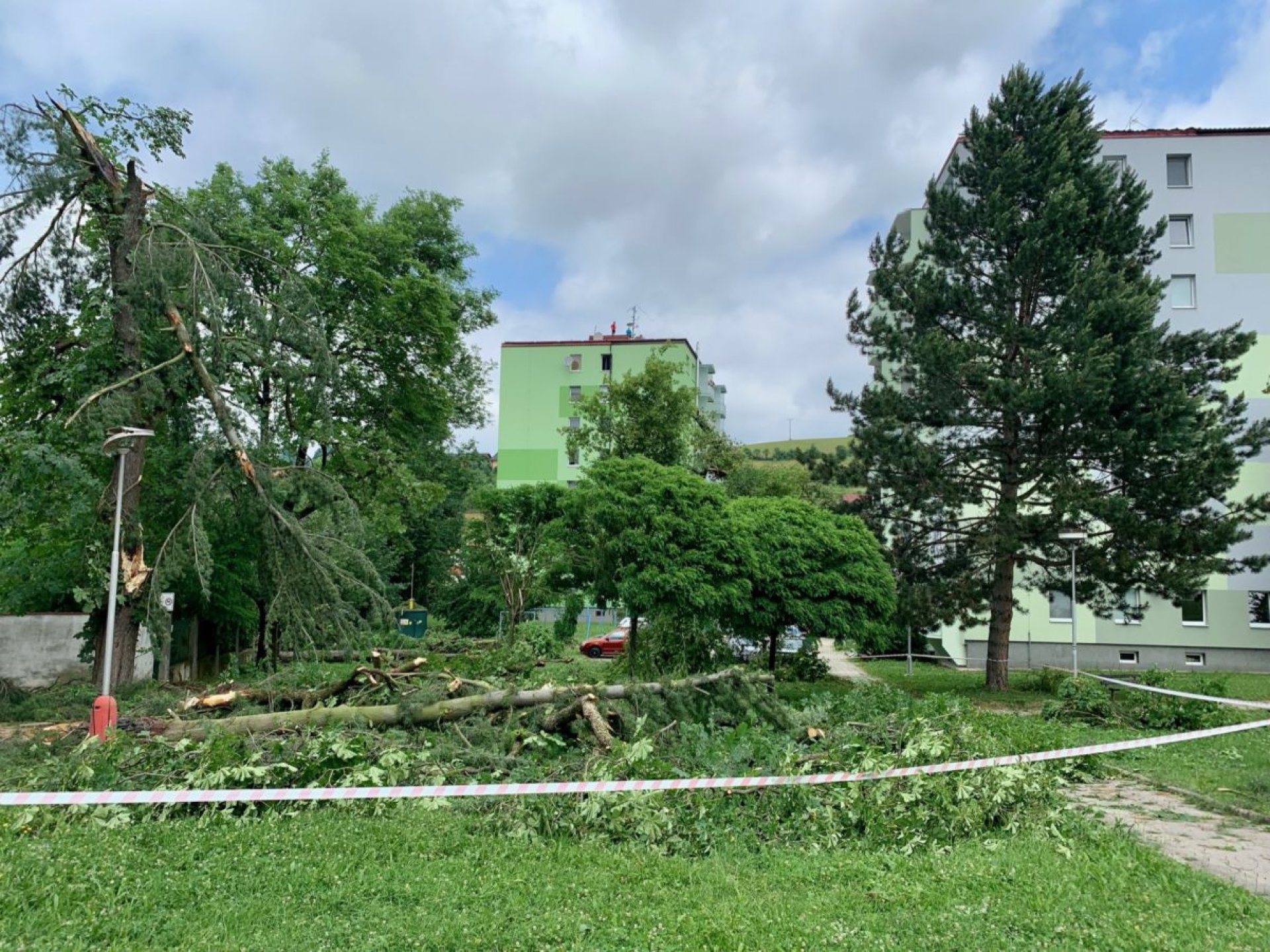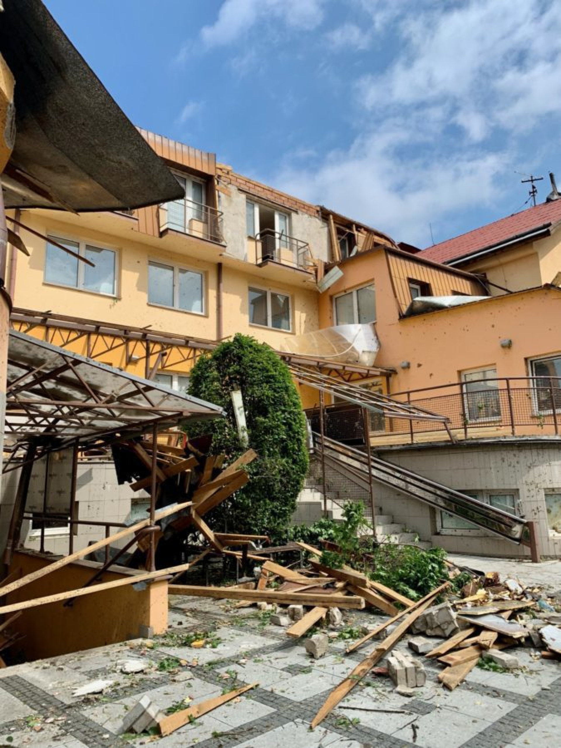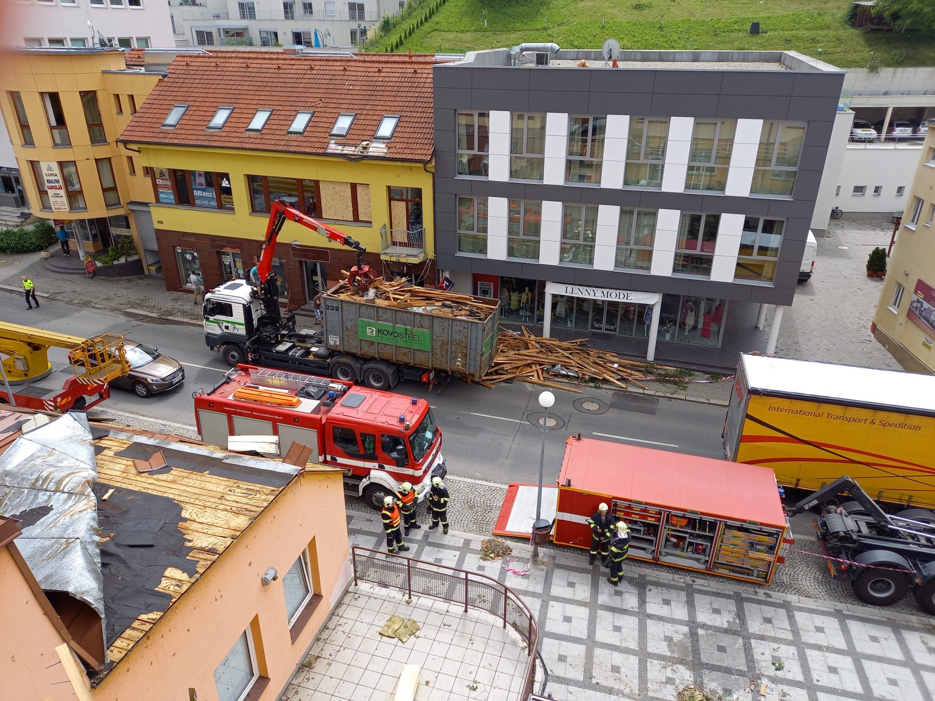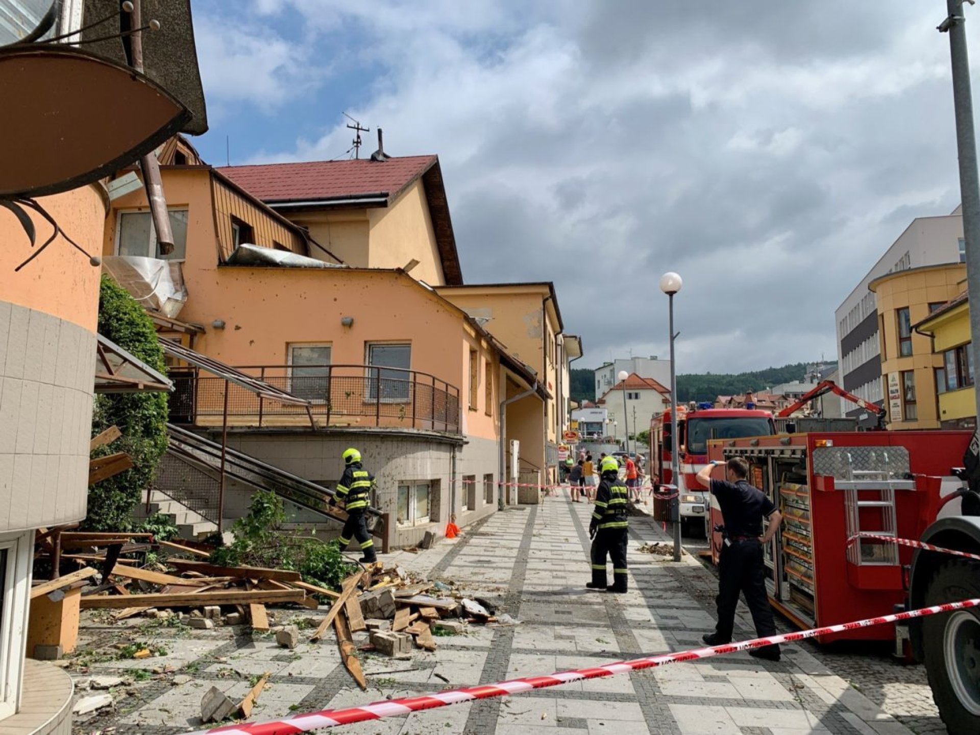 Poničeny byly střechy rodinných i panelových domů, zasažené střechy i popadané stromy se počítají na desítky. Značné následky bouře řeší hasiči na ulici Masarykova, spadlé stromy zdemolovaly i některá zaparkovaná auta v dalších částech města. Ke složitosti situace negativně přispěl také výpadek části telefonních sítí a elektrické energie. Odstraňovaní škod ve výrazně zasažených lokalitách intenzivně pokračuje. „Situace se daří ve spolupráci s hasiči postupně stabilizovat a s pomocí těžké techniky se dále řeší. Nejvíce zasažená místa jsou ohrazena páskou a prosíme veřejnost, aby na ně z bezpečnostních důvodů nevstupovala,“ dodává Marian Ležák.
