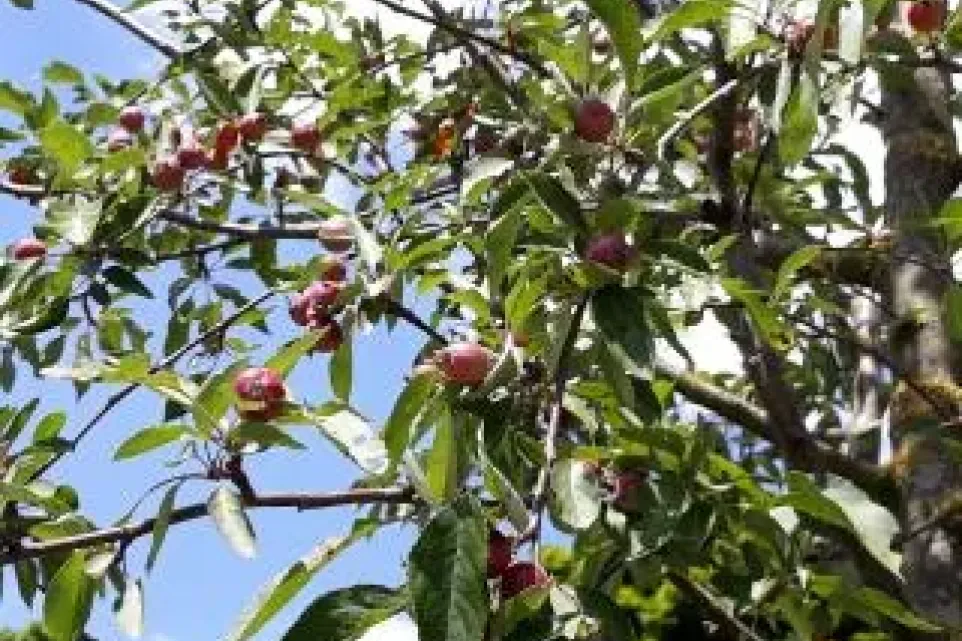 Okrasné jabloni, která byla vloni zasazena u luhačovické radnice u příležitosti oslav stého výročí založení Československa, se urodily krásné plody.