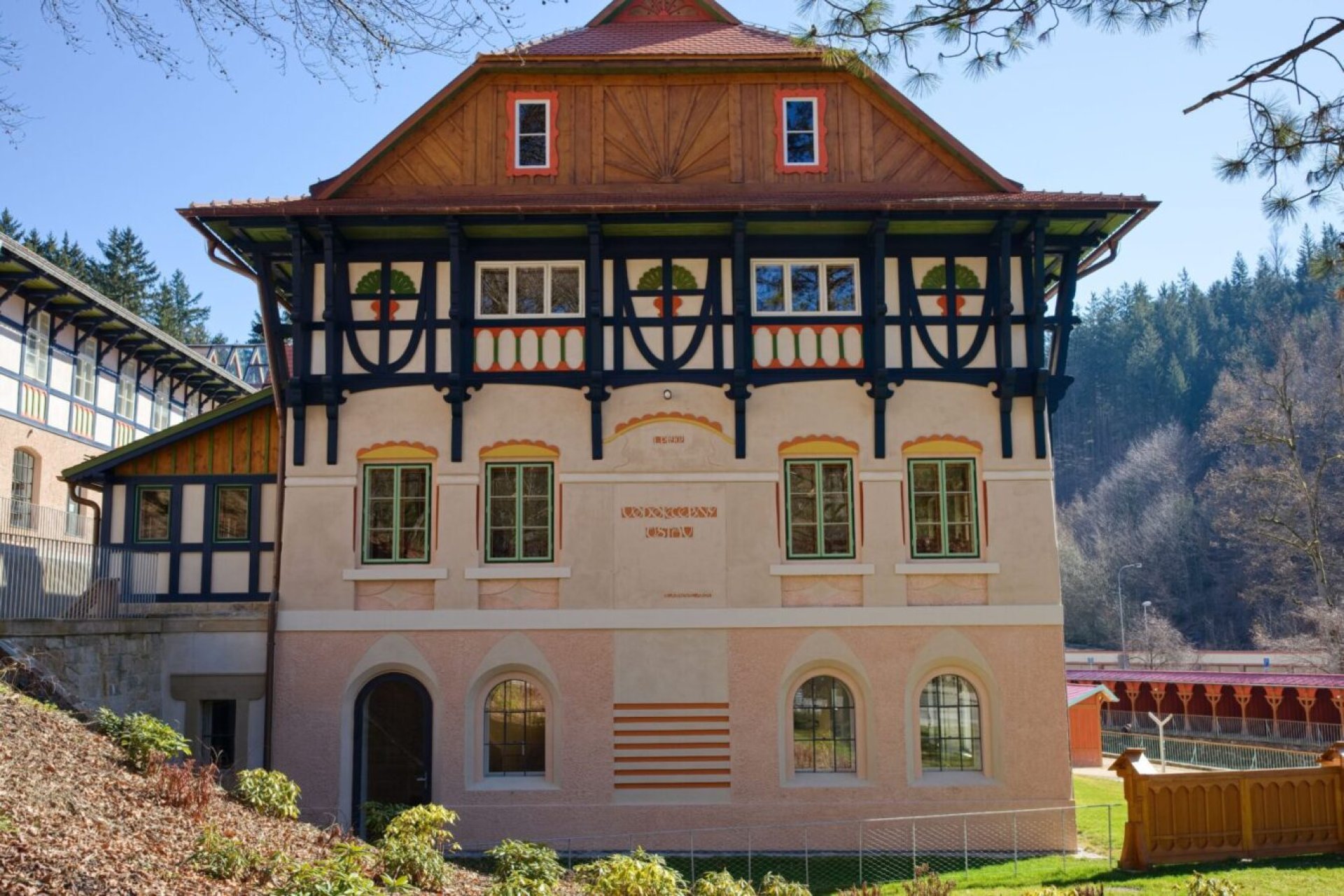 Projekt obnovy zpracoval architekt Petr Všetečka. Srdcem je restaurovaný objekt Vodoléčebného ústavu s expozicí věnovanou historii místa, dílu slovenského architekta Dušana Jurkoviče a také vztahu hudebního skladatele Leoše Janáčka k Luhačovicím.