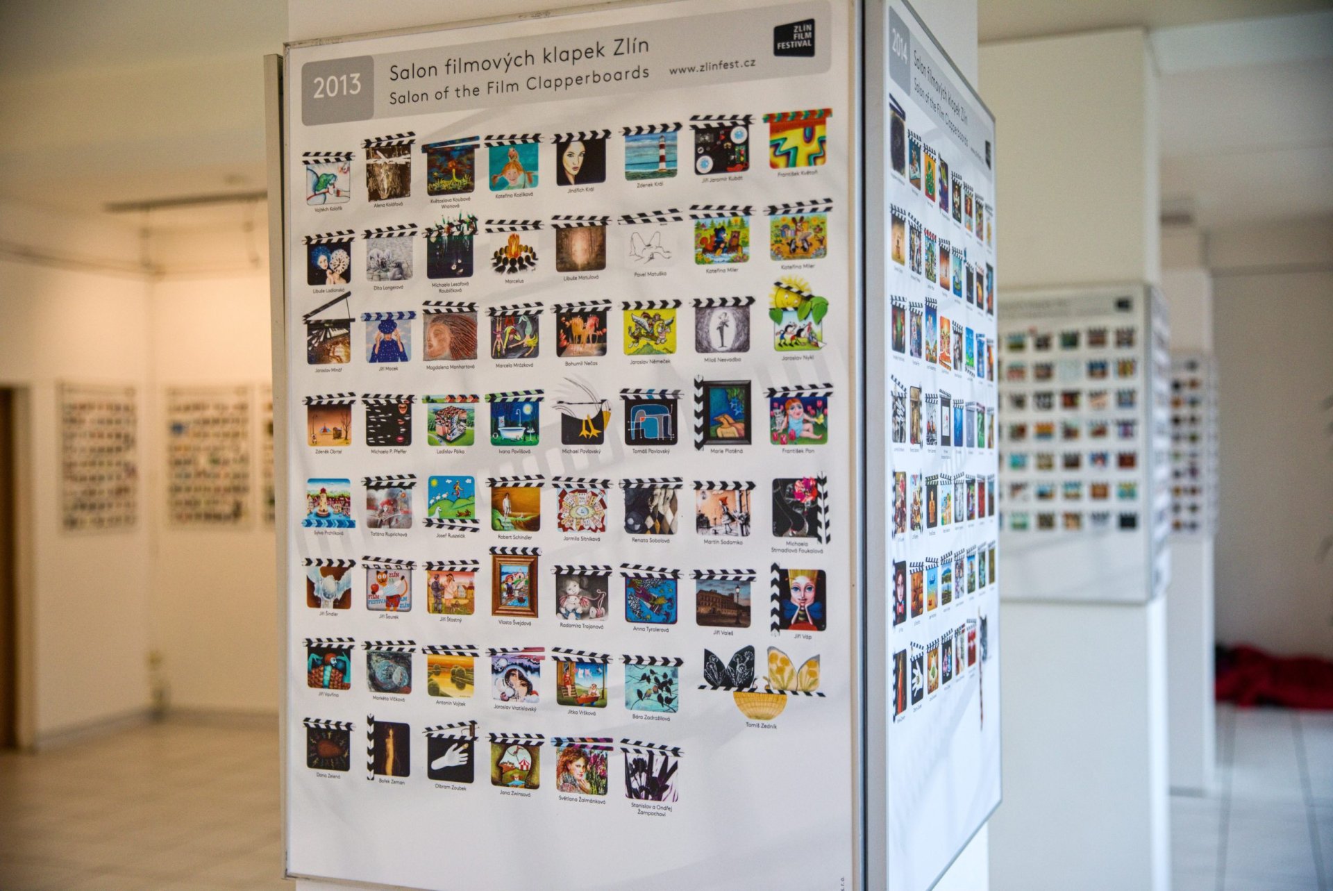 Incredible 2749 flaps have been created during the existence of the Film Flap Salon - a project that connects the visual arts with film. The original film flaps made by selected artists are auctioned off during the Zlín Film Festival and the proceeds support young filmmakers and film school students.