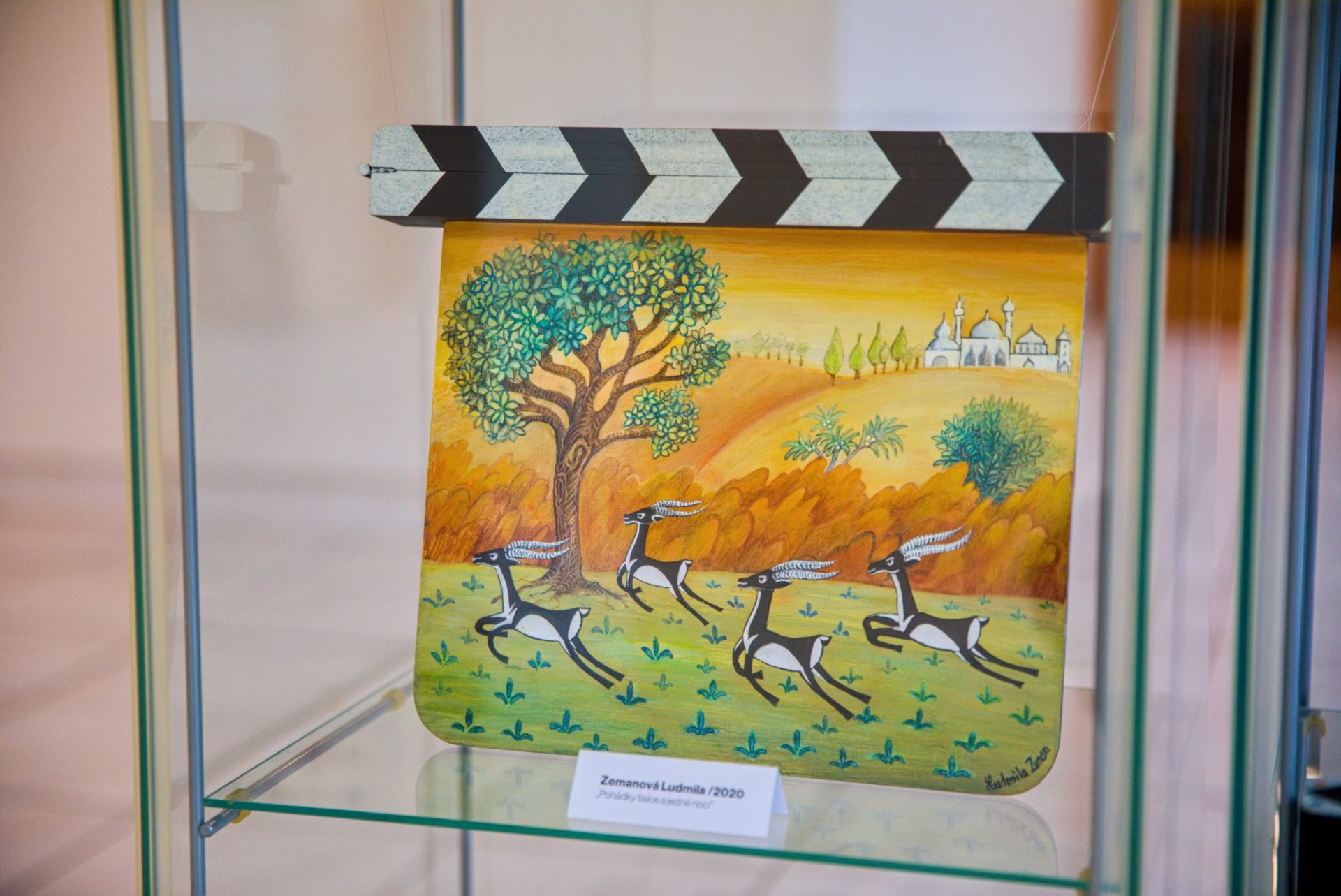In the Elektra Gallery in Luhačovice, visitors can see an overview of all the film flaps created so far, from 1998 to 2021, on large posters, as well as a sample of ten film flaps from previous years, which have been loaned to the exhibition by the FILMTALENT Zlín Foundation. For example, the last flap of the artist Adolf Born, the flap of Ludmila Zeman, daughter of Karel Zeman, Iva Hüttnerová, Kateřina Miler, the Zlín artist Ladislav Pálka and several others are on display.
