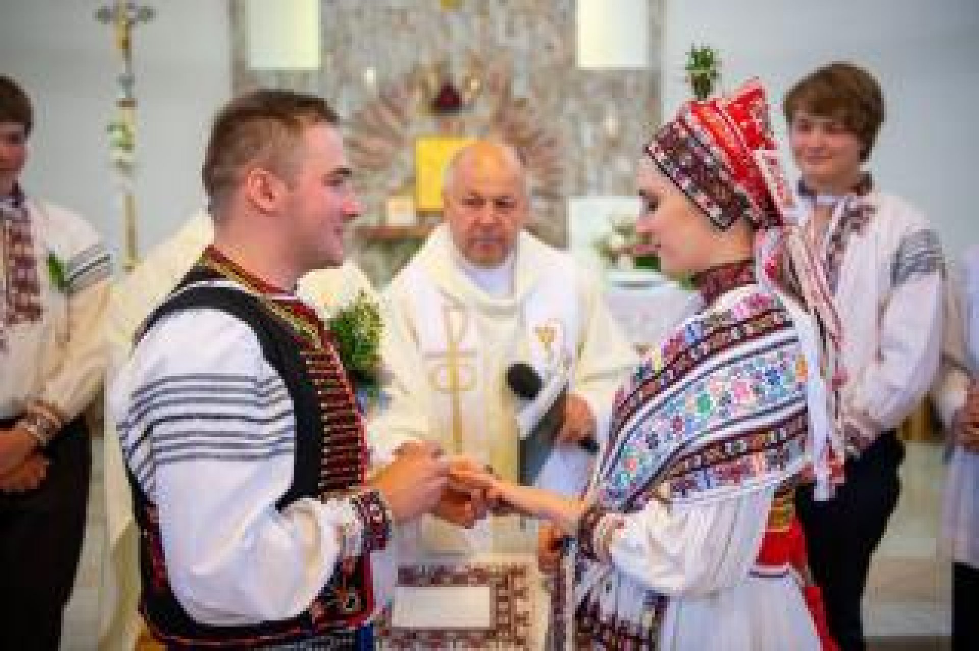 From the wedding ceremony of Mr and Mrs Chalupník /photo from the family archiveLuhačovice also has a beautiful modern church where church ceremonies take place. On Saturday, June 6, local native Anna Slováková and her future husband Štěpán Bartoš walked down the aisle there. They both like folklore and so the whole wedding was in costumes and with the participation of members of several groups.