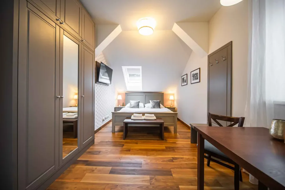 Nabízíme ubytování v novém penzionu Hedvika. Penzion Hedvika je situován na pěší zóně v centru Luhačovic, 5 minut od lázeňské kolonády. Pro hosty je připraveno 10 dvoulůžkových pokojů a dva apartmány (pro 2-4 osoby). Pokoje jsou nové, moderně vybavené, apartmány jsou vybavené nezávislou klimatizací. Penzion Hedvika je pokryt bezdrátovou technologií přenosu internetu wifi, poskytovanou ubytovaným zdarma. Na každém z pokojů je rychlovarná konvice, mikrovlnná trouba, televizor a lednice. Každý pokoj má vlastní předsíň a sociální zařízení se sprchovým koutem. Pro pokoje s výhledem do zahrady je k dispozici velkoplošná terasa 5×10m. V ceně ubytování je parkování na vlastním parkovišti.